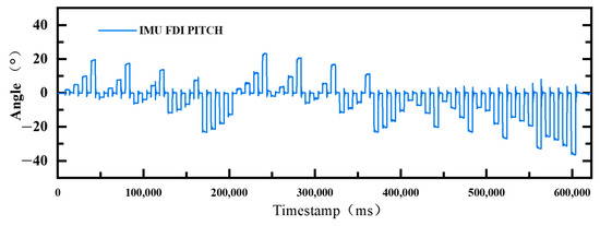 The input air pressure of each way is in the range of 0–120 kPa. Following the above air pressure selection, to obtain a stable output angle value, it is kept for 5s after inflation and for 5 s after restoring the original position in the inflation. The acquisition frequency is 20 HZ. Considering the drift accumulation and zero drift of the IMU in long-term acquisition, this paper adopts the segmented mean difference method to process the raw attitude data. A certain number of trapezoidal data sets are obtained under different pressure combinations. The specific processing method of data filtering and selection: the data are divided into multiple intervals by timestamp segmentation, and outlier filtering is performed on each data segment (based on the standard deviation or percentile calculation of the threshold). The mean difference between neighboring segments is then calculated to extract dynamically changing features. Segmentation captures the phase characteristics of the time series, outlier filtering reduces noise interference, and mean-value difference computation highlights the trend of interval changes. The overall method is flexible and efficient, suitable for analyzing the nonlinear characteristics of dynamic systems, and at the same time improves the data quality and reliability of the results.
