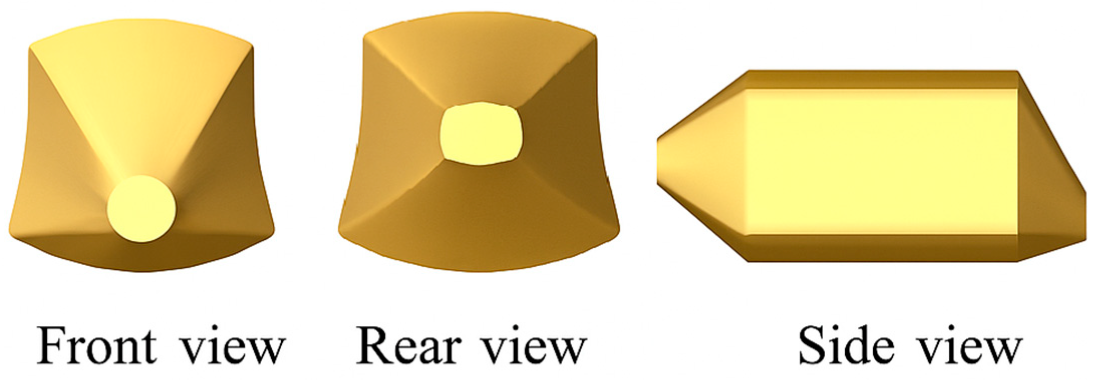 CAD models of Spotted boxfish, used as biological references. The streamlined morphology provided a baseline for evaluating AI-generated automotive concepts. This exemplar highlights how biological form can inform structural coherence and aerodynamic design. (redrawn from [