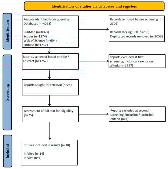 Most of the evidence was derived from in vitro studies (n = 14), though the inclusion of such diverse experimental approaches provides a realistic view of this study’s goals. As opposed to systematic reviews that aim to address precise research questions, scoping reviews aim to map all available evidence broadly, incorporating various study designs. The key findings from the selected studies are extracted in Table 3.