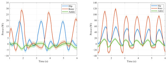 Currently, commonly used CPG optimization schemes, such as references [20,34], mainly focus on the walking stability of the optimization objective. This approach often overlooks key aspects such as naturalness of movement and energy consumption. The contribution of gait coordination and motion naturalness to peak power suppression and energy redistribution can be quantitatively evaluated using the system-level energy consumption metric. The corresponding experimental data are presented in Table 3. Under the experimental condition of keeping the same distance and time, the CoT of near natural gait was 1.75, while that of uncoordinated gait was 4.08. Compared with the optimization scheme that only considers stability, the energy consumption has been reduced by 57.1%. The simulation results show that the coordinated gait mode significantly reduces the energy consumption of the system, and its energy efficiency characteristics conform to the energy optimization law in human biomechanics.