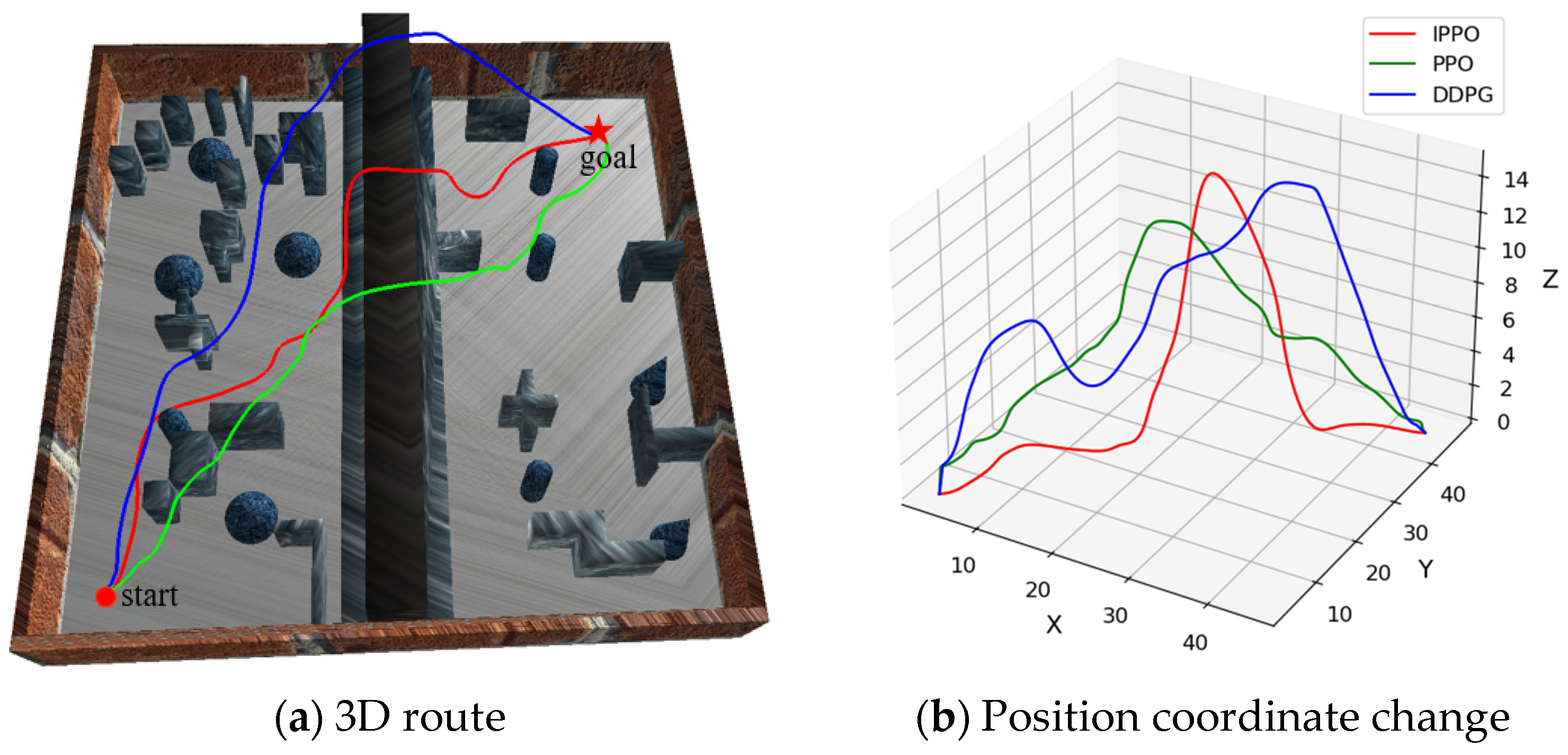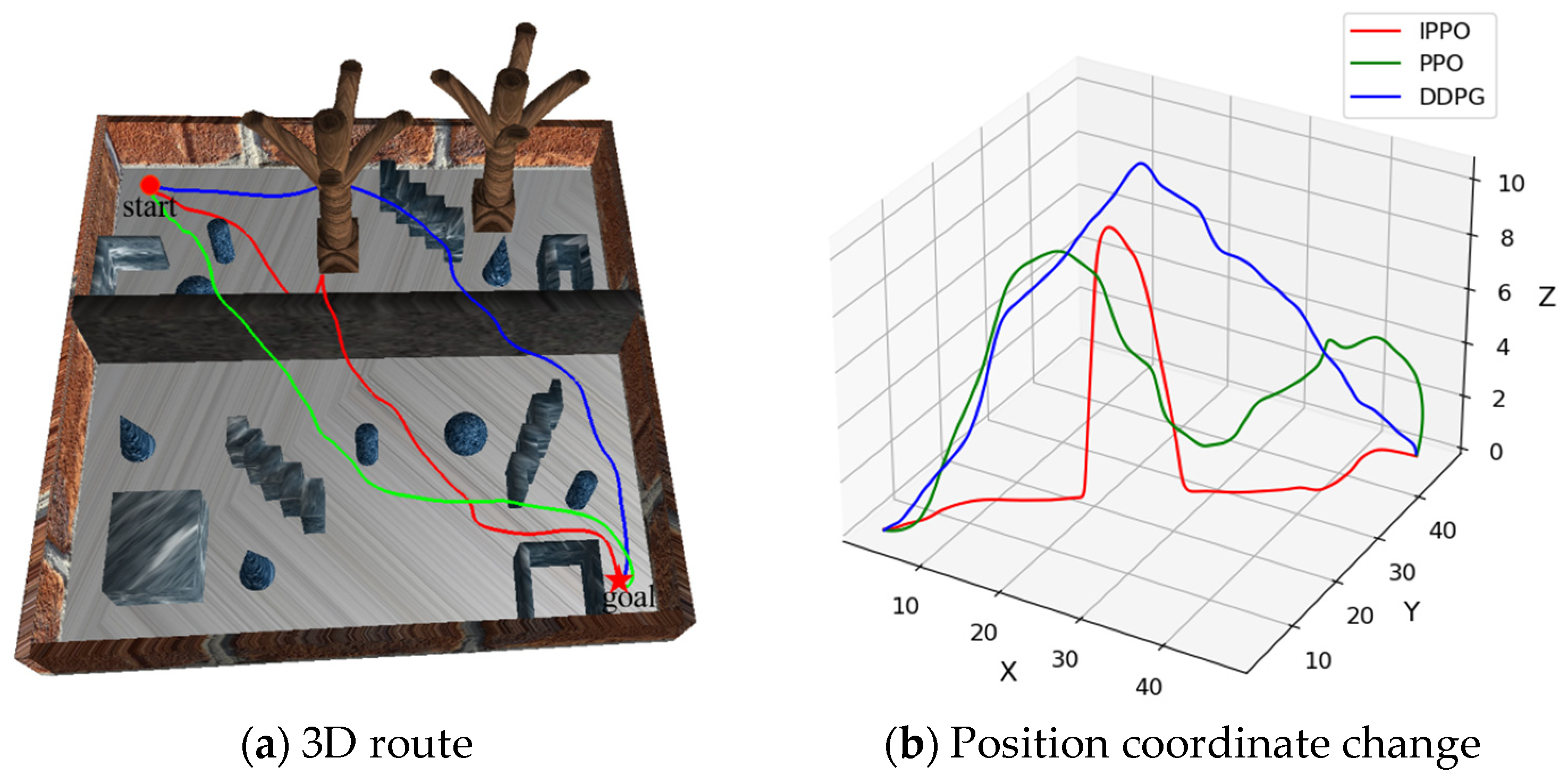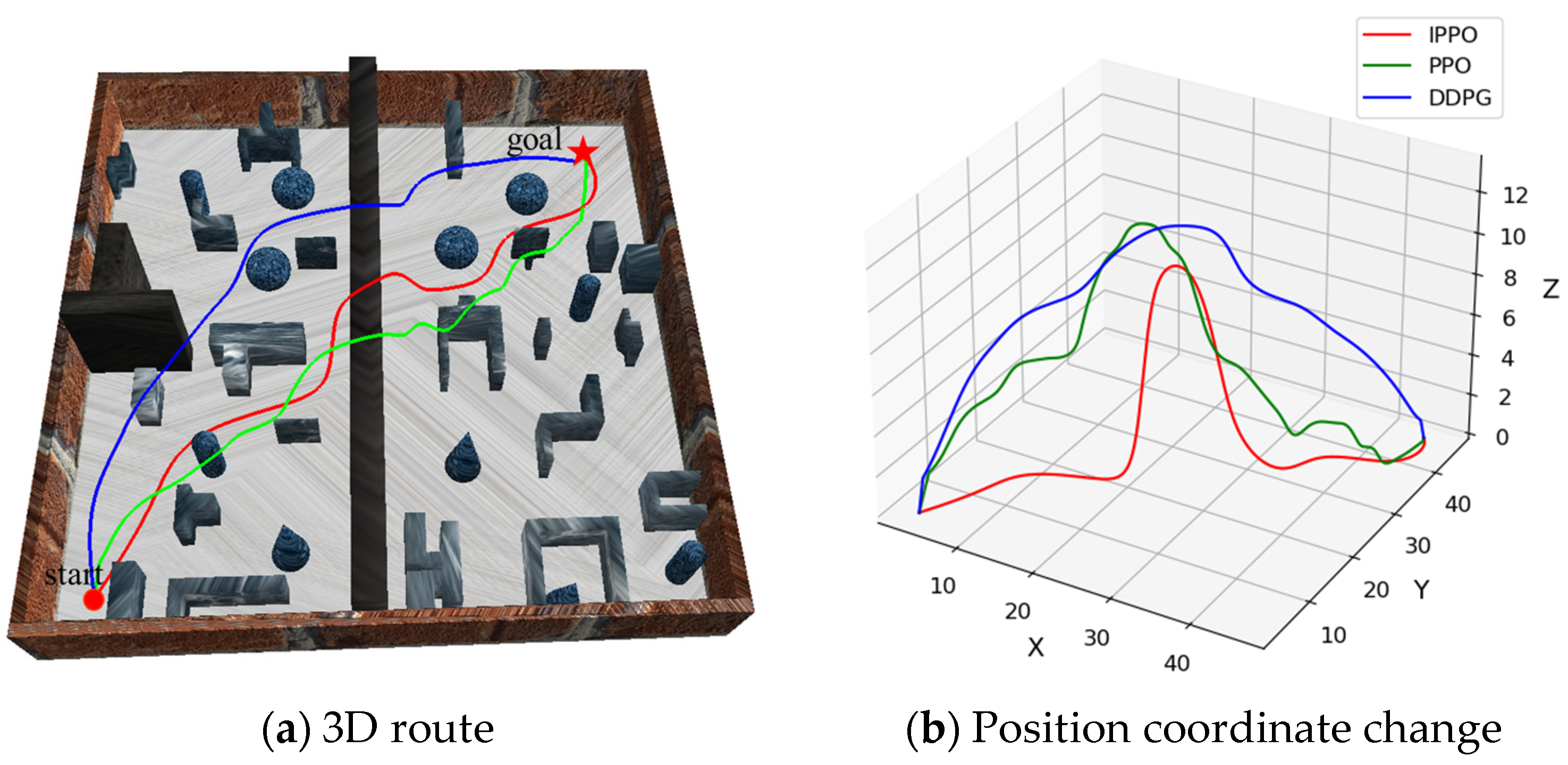 - Qi, C.; Wu, C.; Lei, L.; Li, X.; Cong, P. UAV path planning based on the improved PPO algorithm. In Proceedings of the Asia Conference on Advanced Robotics, Automation, and Control Engineering (ARACE), Qingdao, China, 26–28 August 2022. [Google Scholar]