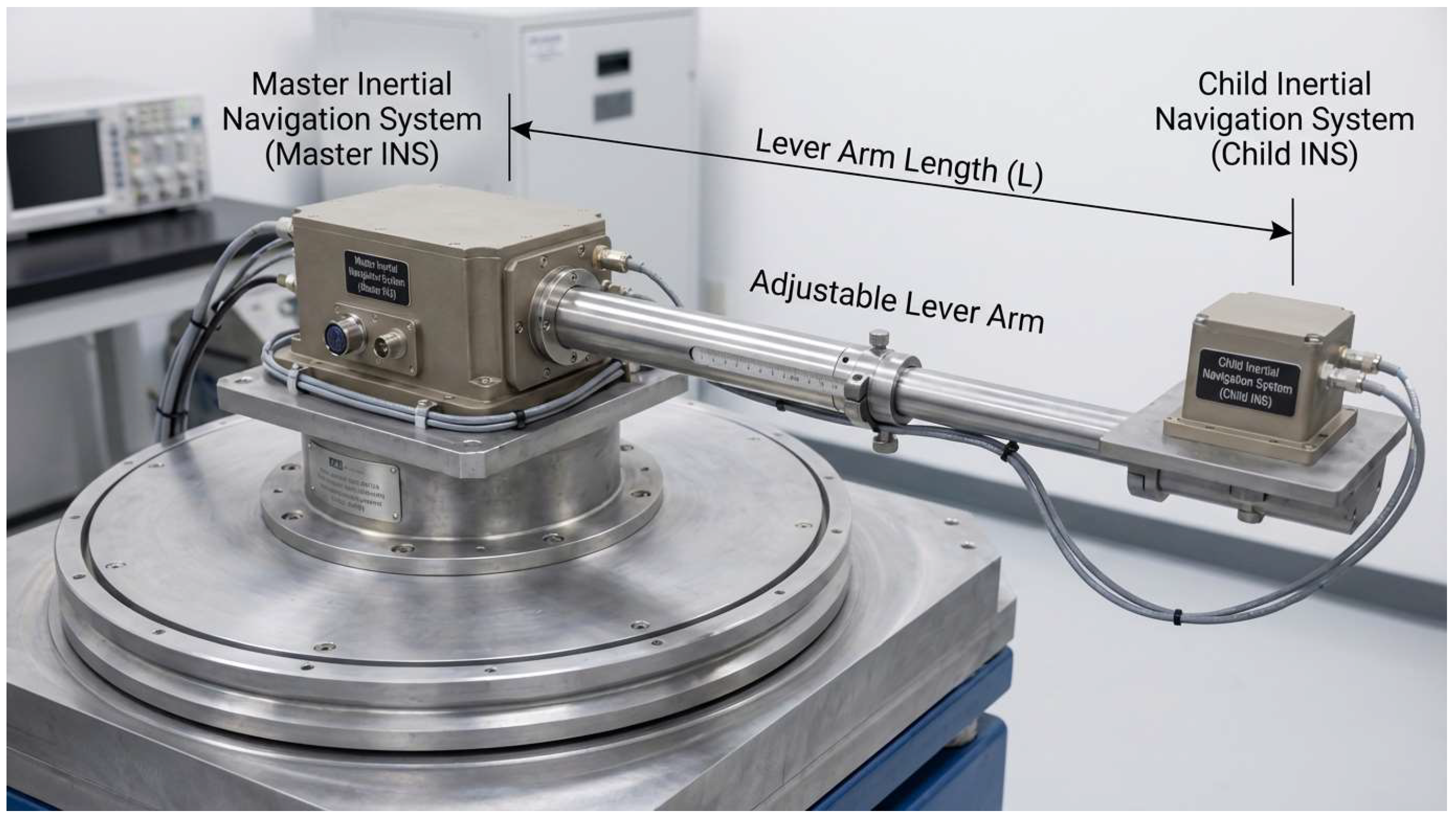 However, due to significant spatial installation offsets and structural flexibility between the master and slave INSs, the acceleration and angular rate signals measured by the two units differ markedly whenever the mother platform maneuvers or the launch mechanism moves. Consequently, the velocity solution of the slave INS is superimposed with an additional linear velocity component induced by the angular motion of the mother platform—this phenomenon is known as the lever-arm effect [