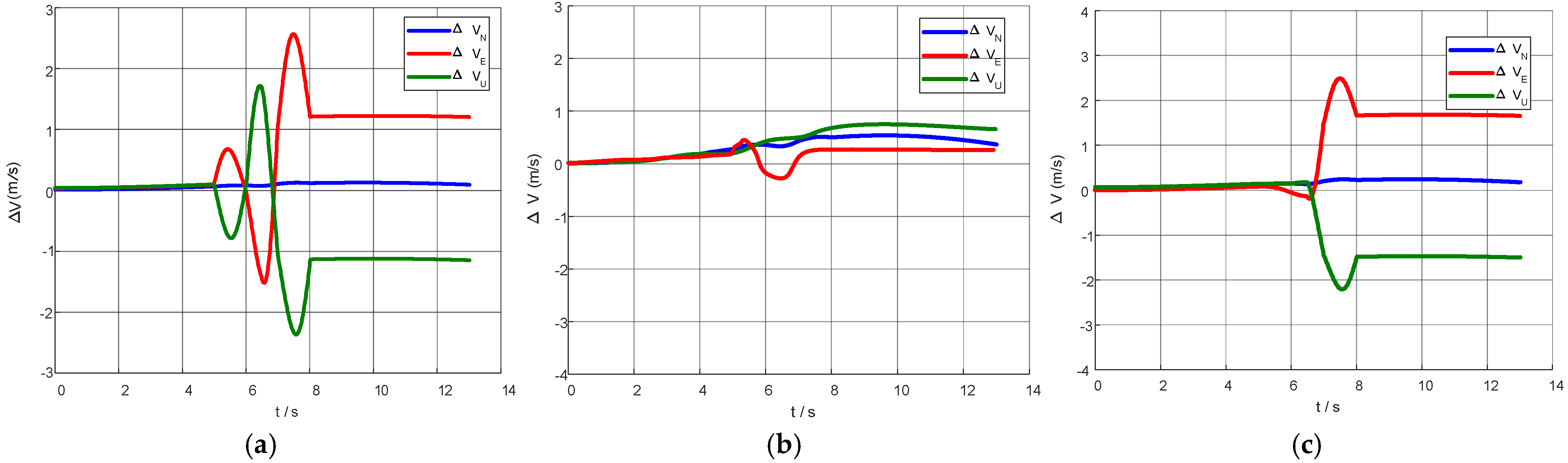 22]. Based on the above analysis, a velocity–attitude joint matching strategy has been proposed to integrate the advantages of both methods. This approach combines two types of observation information: velocity differences and attitude differences to construct a joint observation model with greater information redundancy and error compensation capability, which can significantly enhance the observability and convergence speed of the filter [