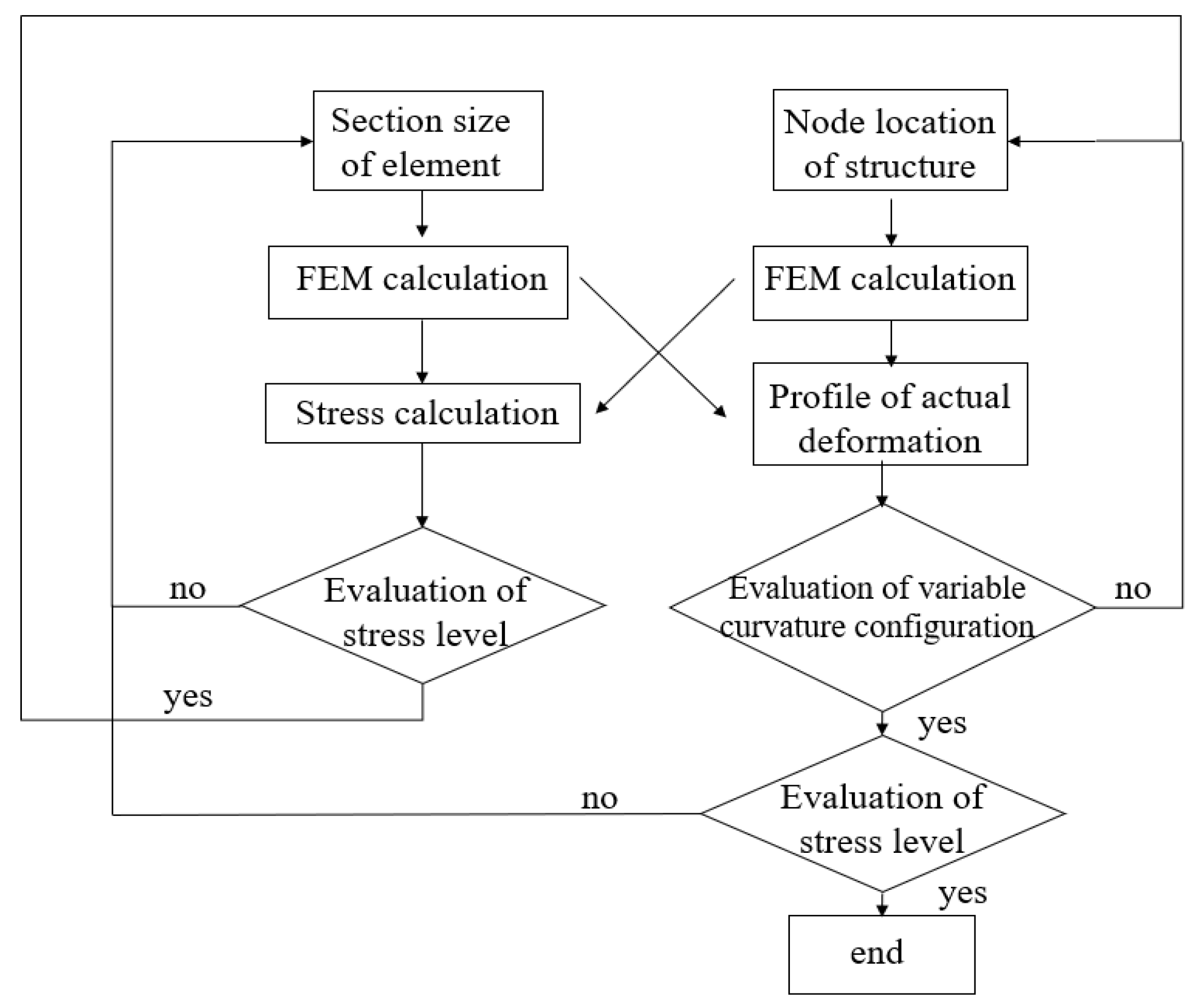 The structural size and the node location significantly affect the stress level and variable bending configuration during the structural deformation. Therefore, the coupling of the two was introduced during the optimization. For such problems, separate subspaces for various optimization variables are created using their respective evaluation functions, followed by alternating optimization iterations. This is illustrated in