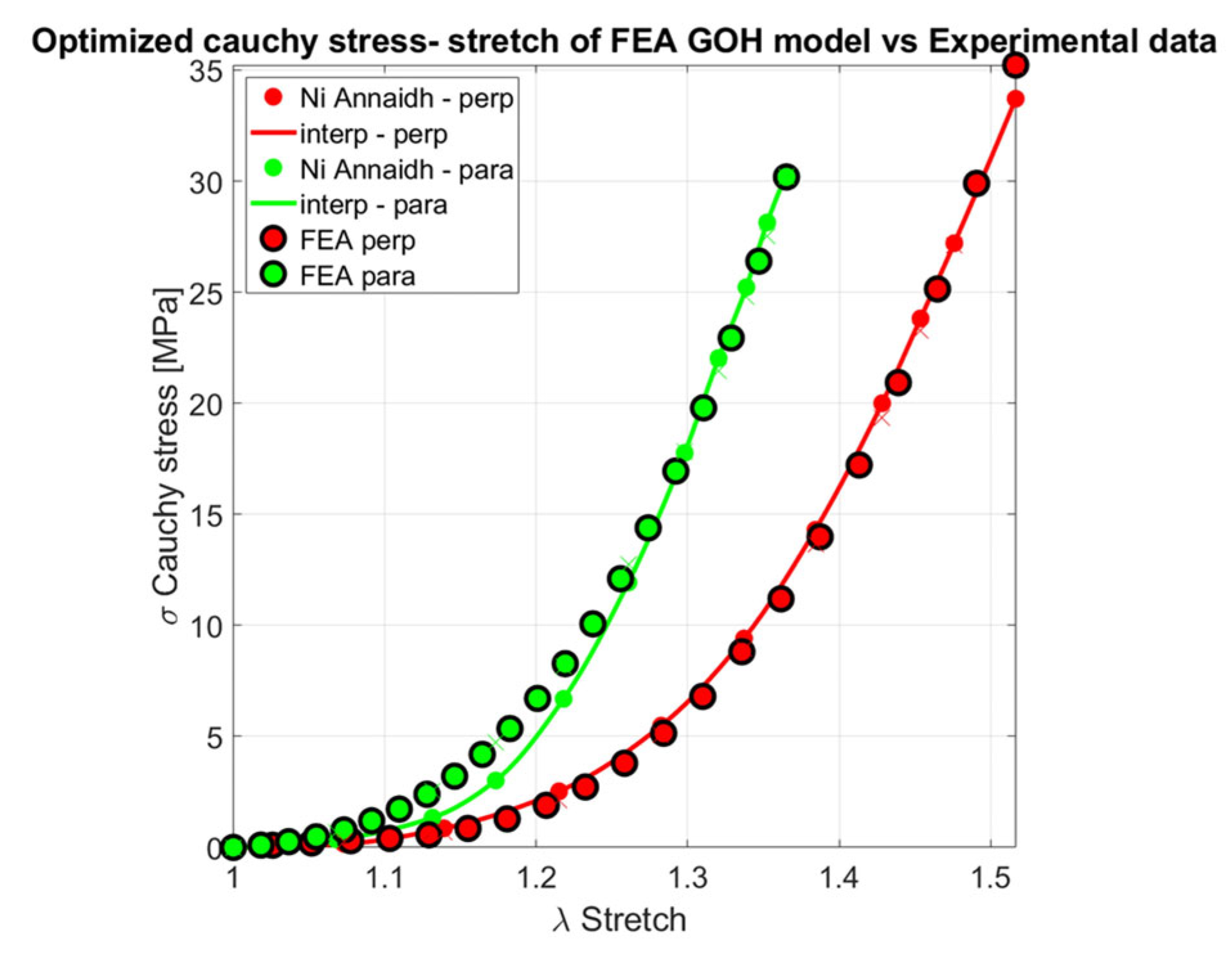 - Gasser, T.C.; Ogden, R.W.; Holzapfel, G.A. Hyperelastic Modelling of Arterial Layers with Distributed Collagen Fibre Orientations. J. R. Soc. Interface 2006, 3, 15–35. [Google Scholar] [CrossRef]