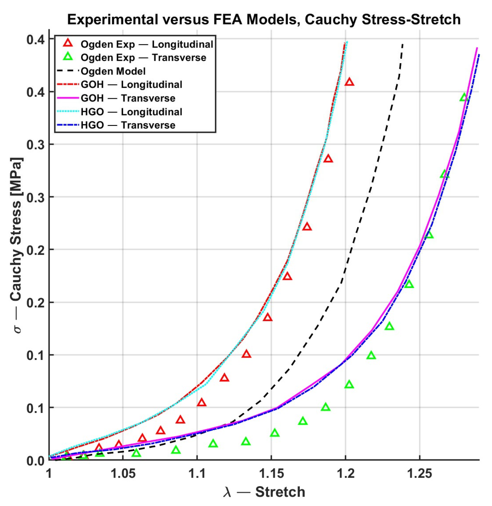 - Holzapfel, G.A.; Gasser, T.C.; Ogden, R.W. A New Constitutive Framework for Arterial Wall Mechanics and a Comparative Study of Material Models. J. Elast. 2000, 61, 1–48. [Google Scholar] [CrossRef]