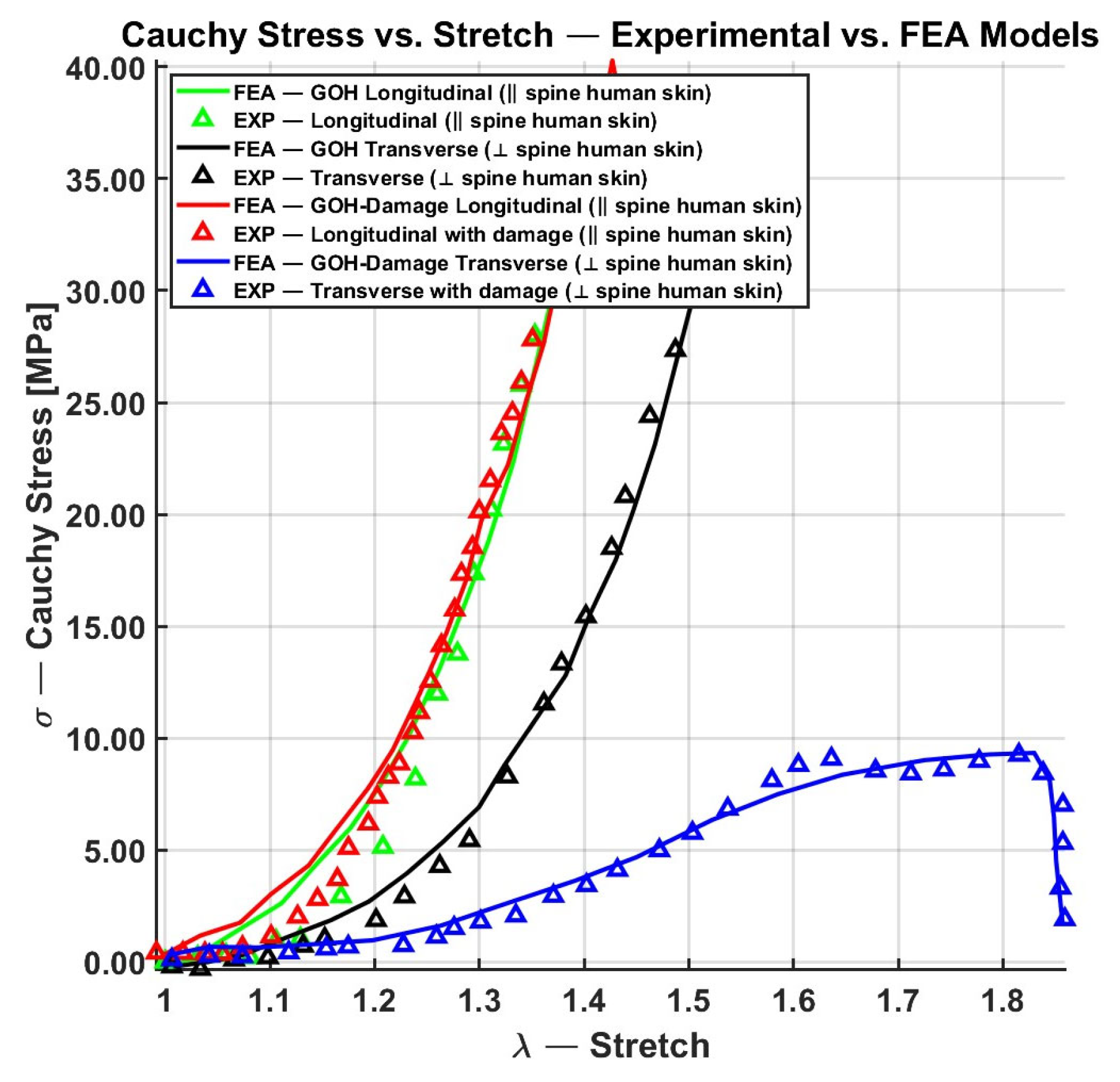 - Li, W.; Luo, X.Y. An Invariant-Based Damage Model for Human and Animal Skins. Ann. Biomed. Eng. 2016, 44, 3109–3122. [Google Scholar] [CrossRef] [PubMed]