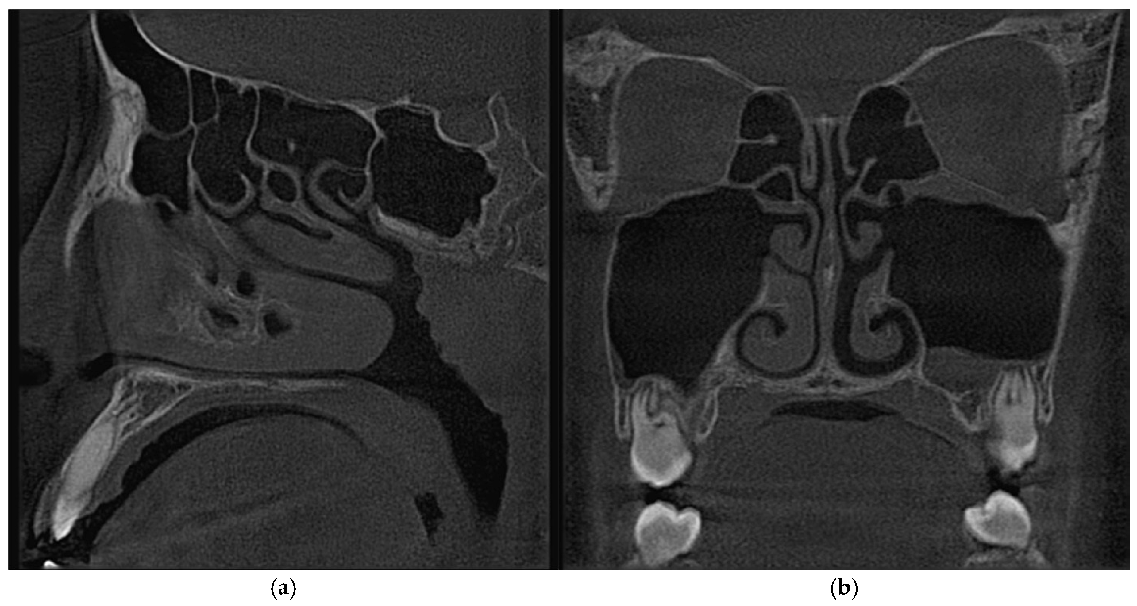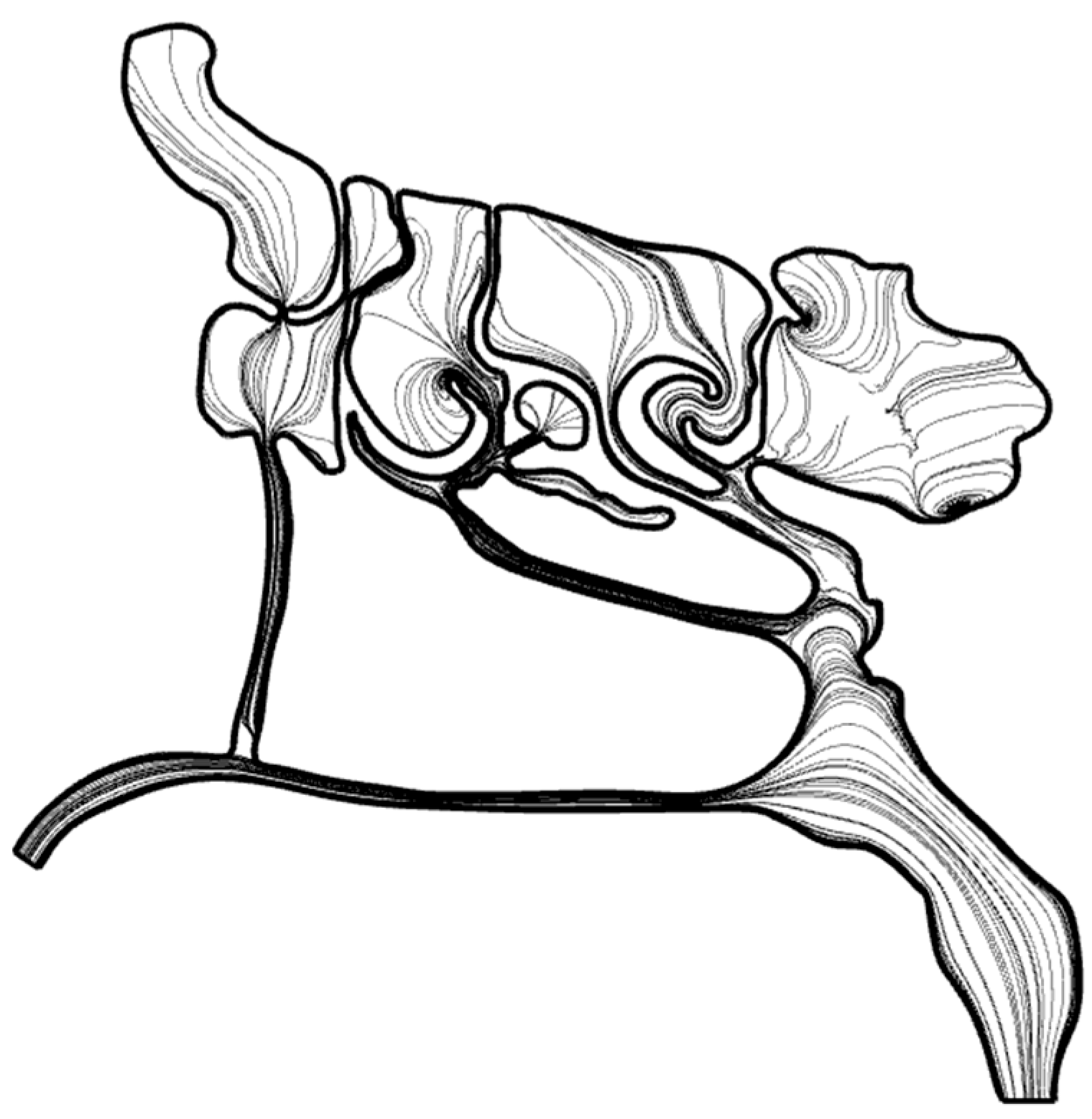 - Tretiakow, D.; Witkowska, E.; Skorek, A. Maxillary sinus aeration analysis using computational fluid dynamics. PLoS ONE 2022, 17, e0264107. [Google Scholar] [CrossRef] [PubMed]