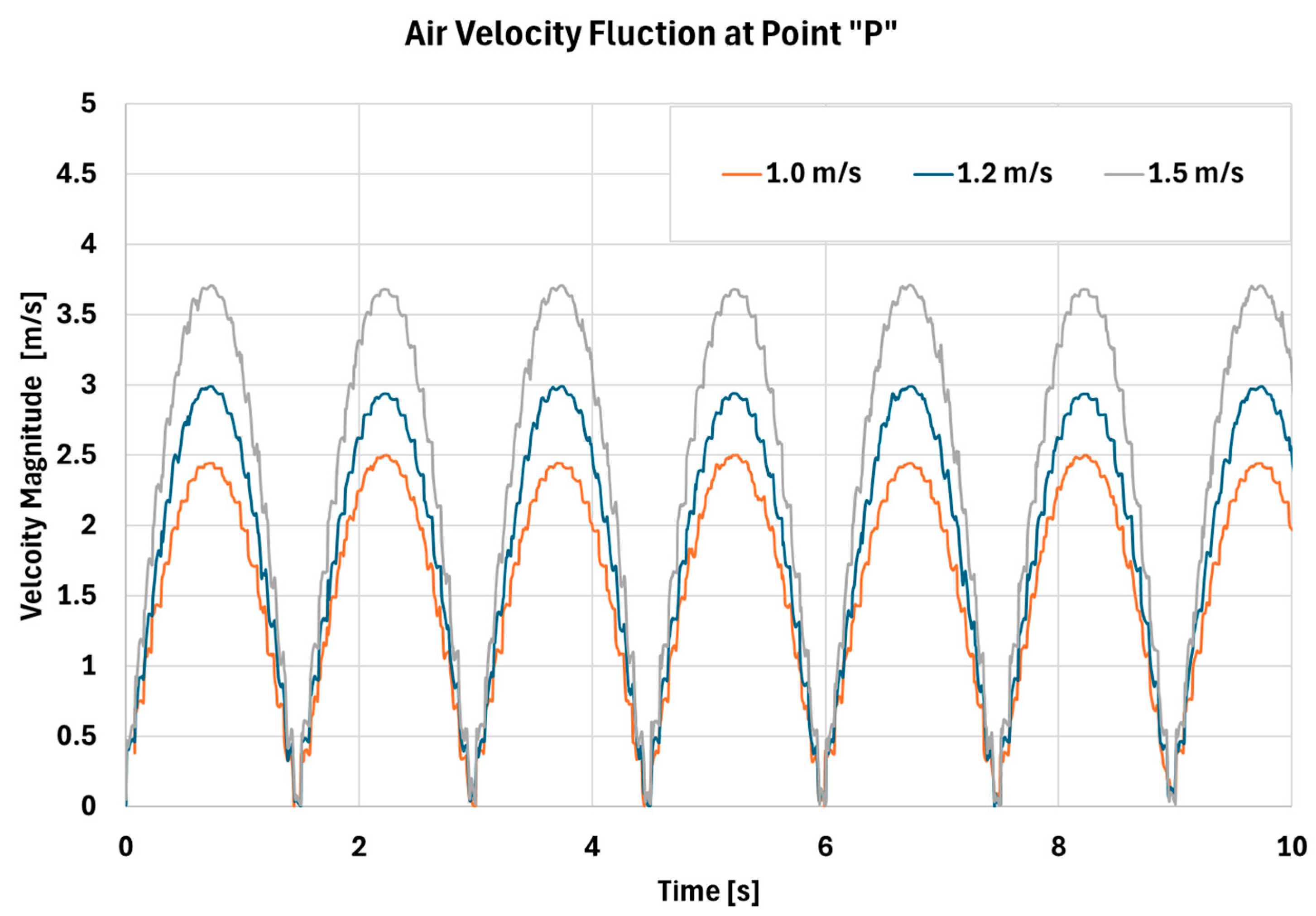3.2.2. Effect of Sinusoidal Respiration on Flow Fluctuation Inside Nasal Cavity