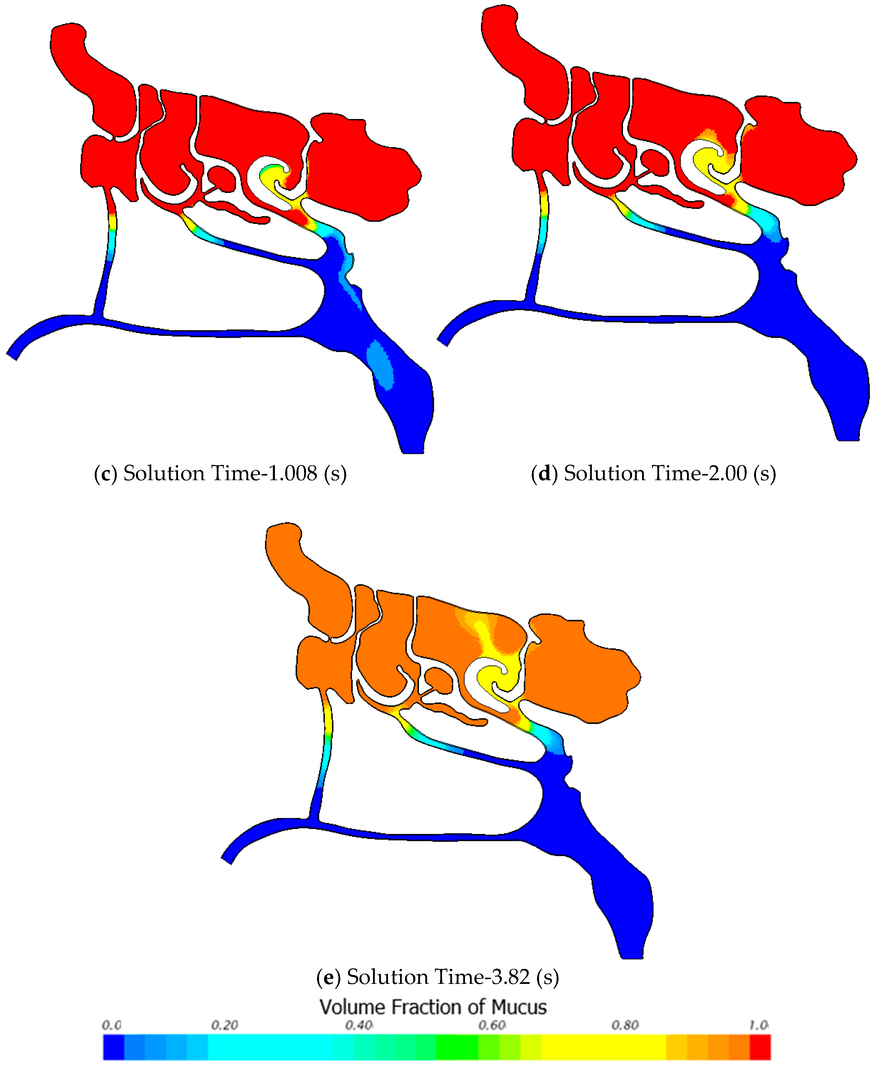 3.2.3. Air-Mucus Two-Phase Flow Simulation