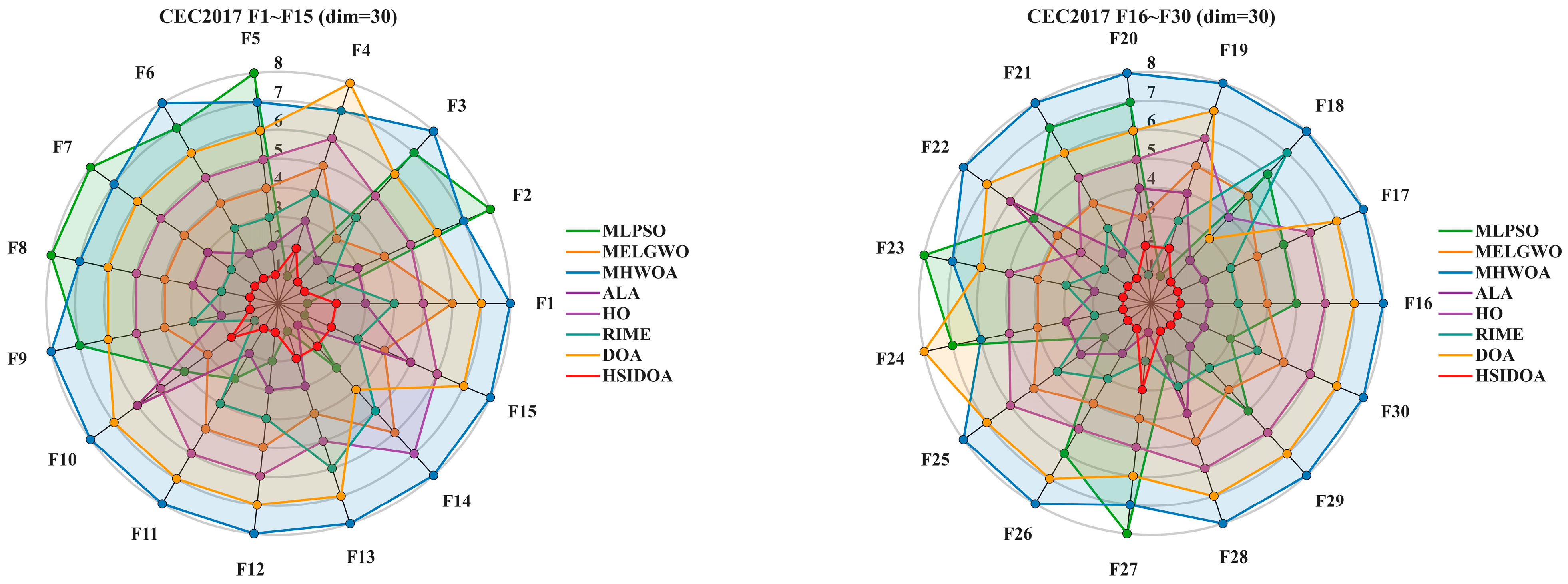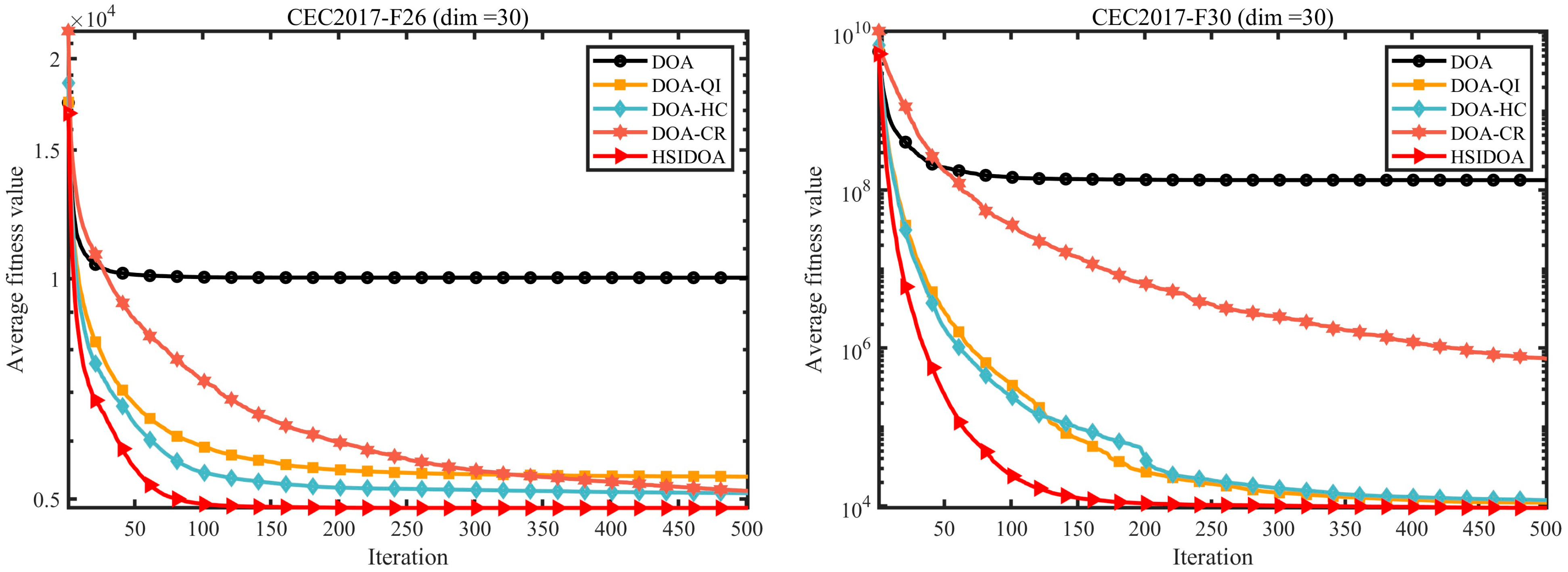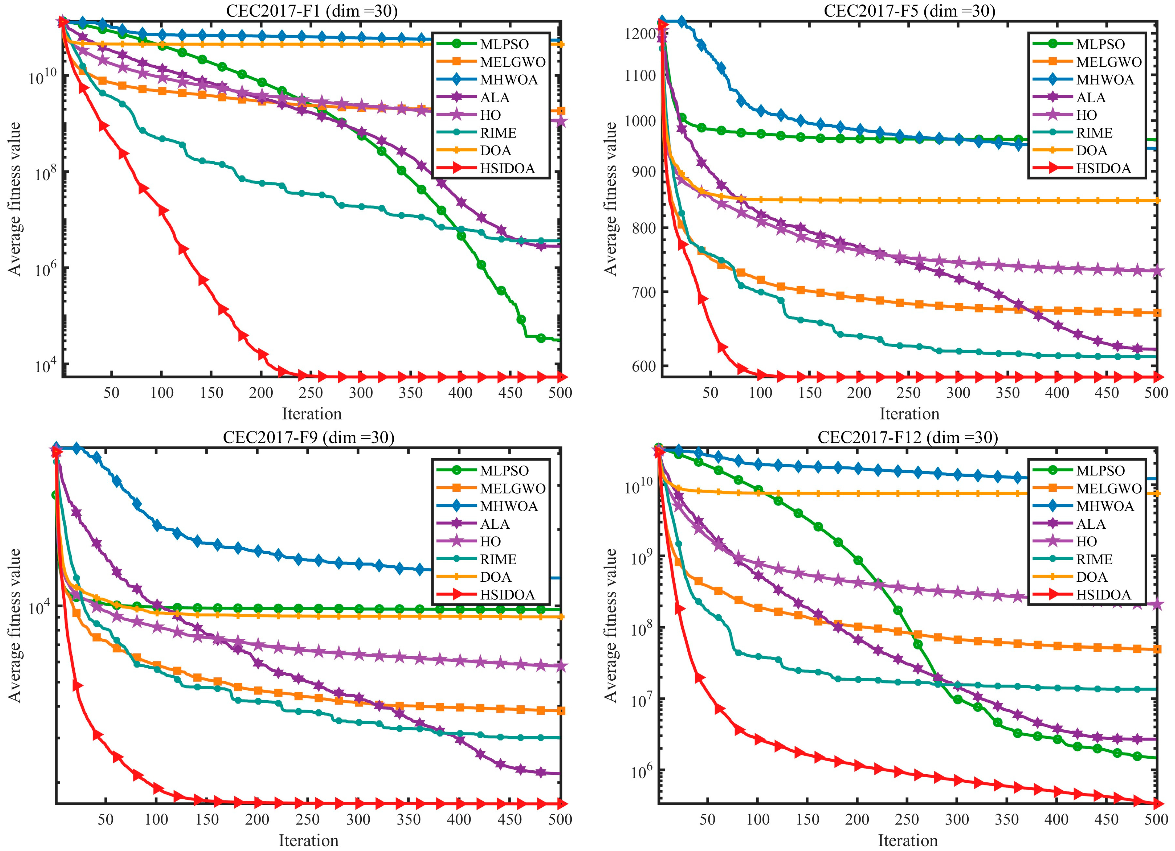 - Extensive experiments on the CEC2017 and CEC2022 benchmark suites are conducted to comprehensively validate the superiority of HSIDOA.