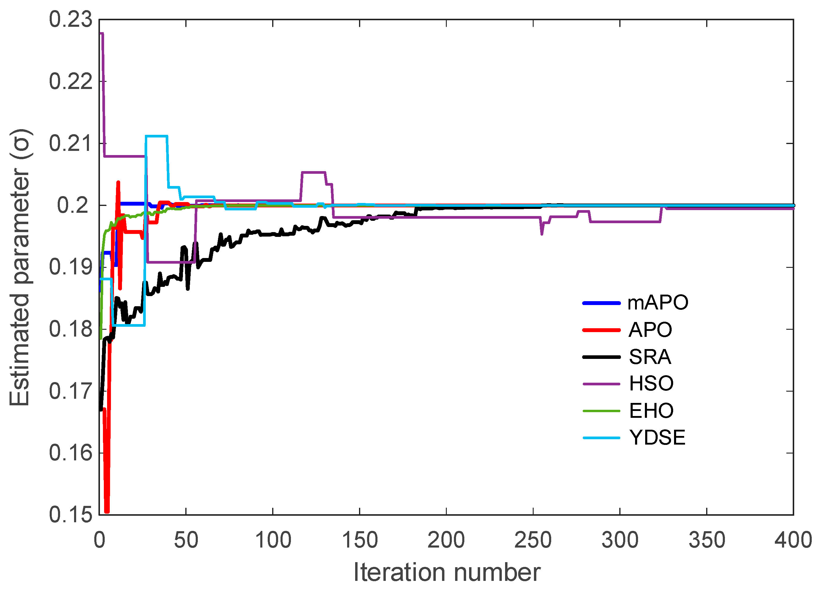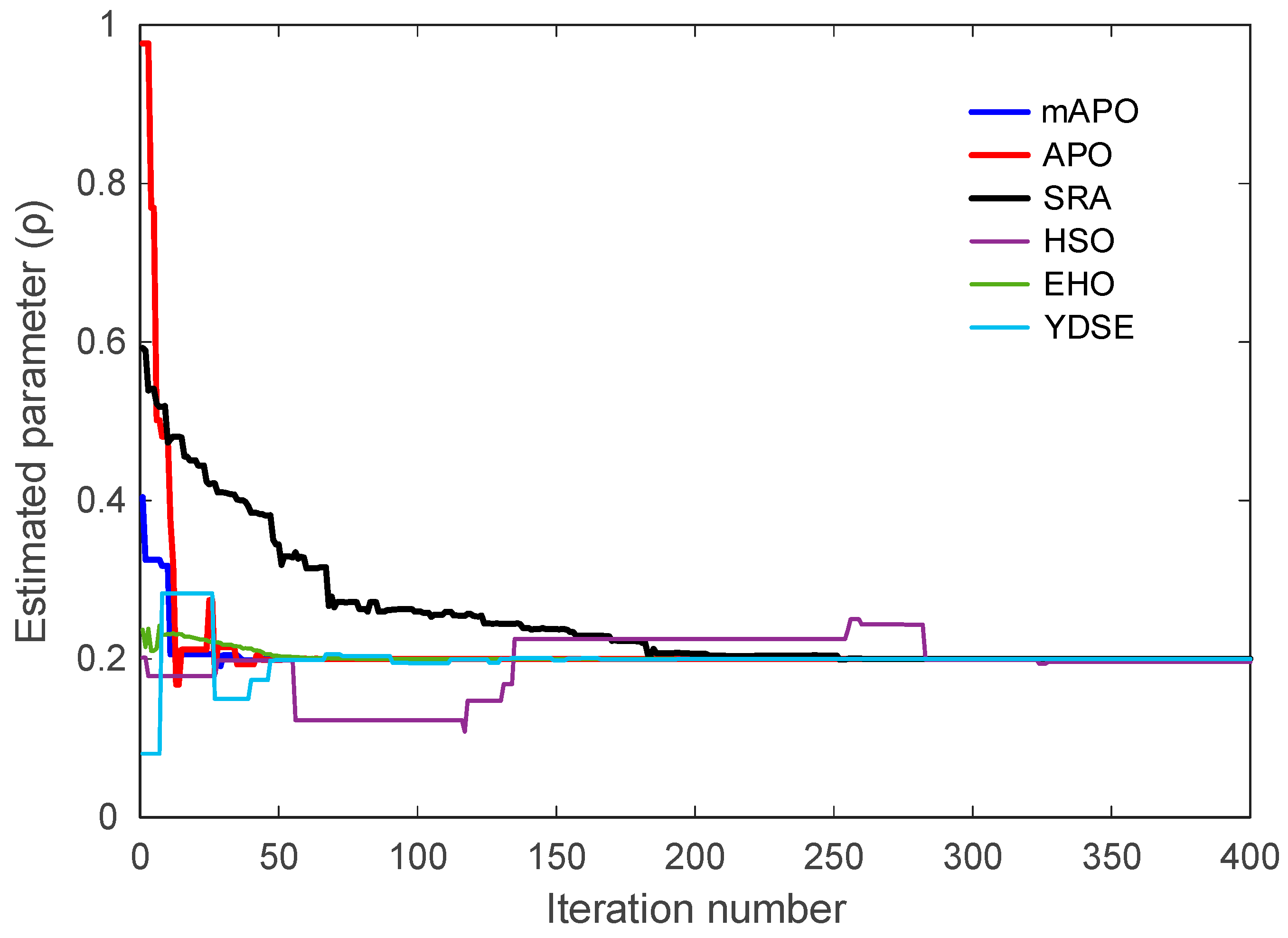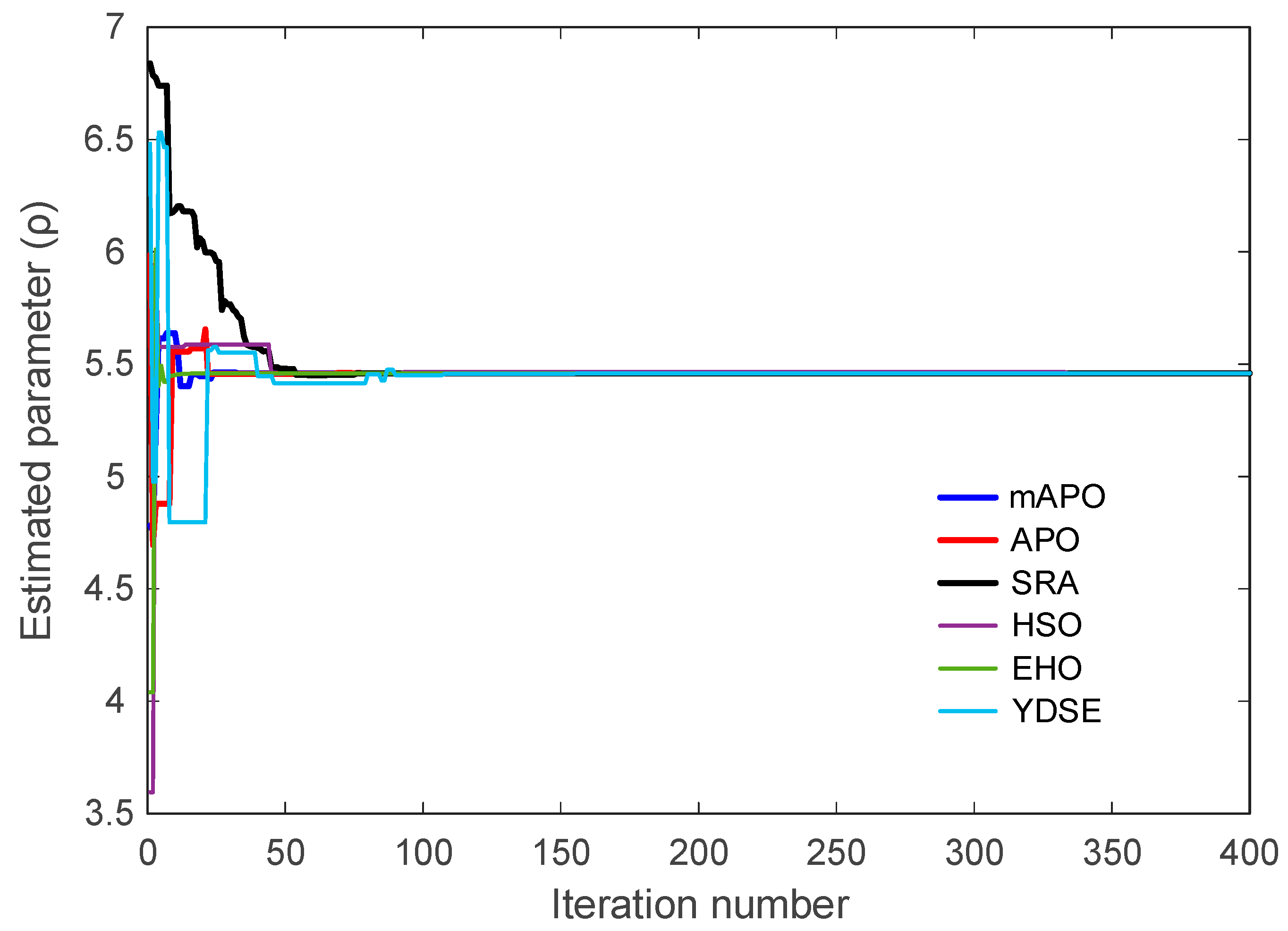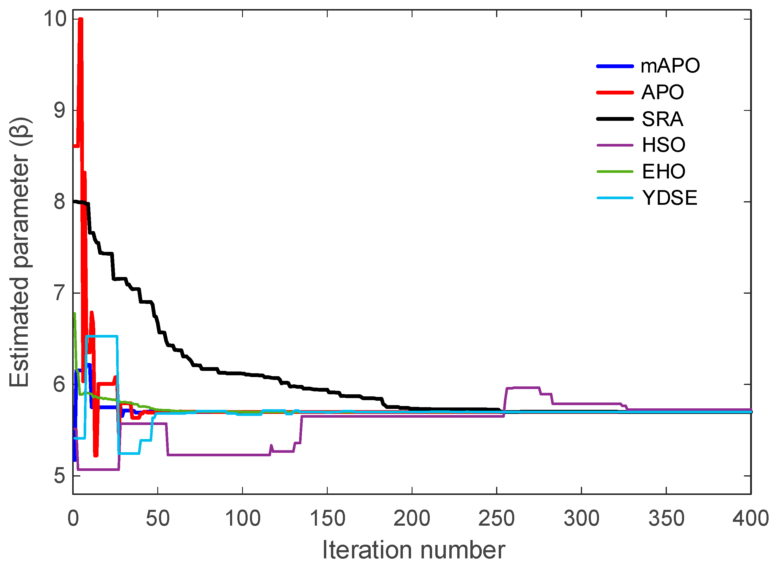 Table 9. While APO produces very small but nonzero errors, SRA, HSO, EHO, and YDSE exhibit noticeably larger objective values and higher variability. The convergence curves in