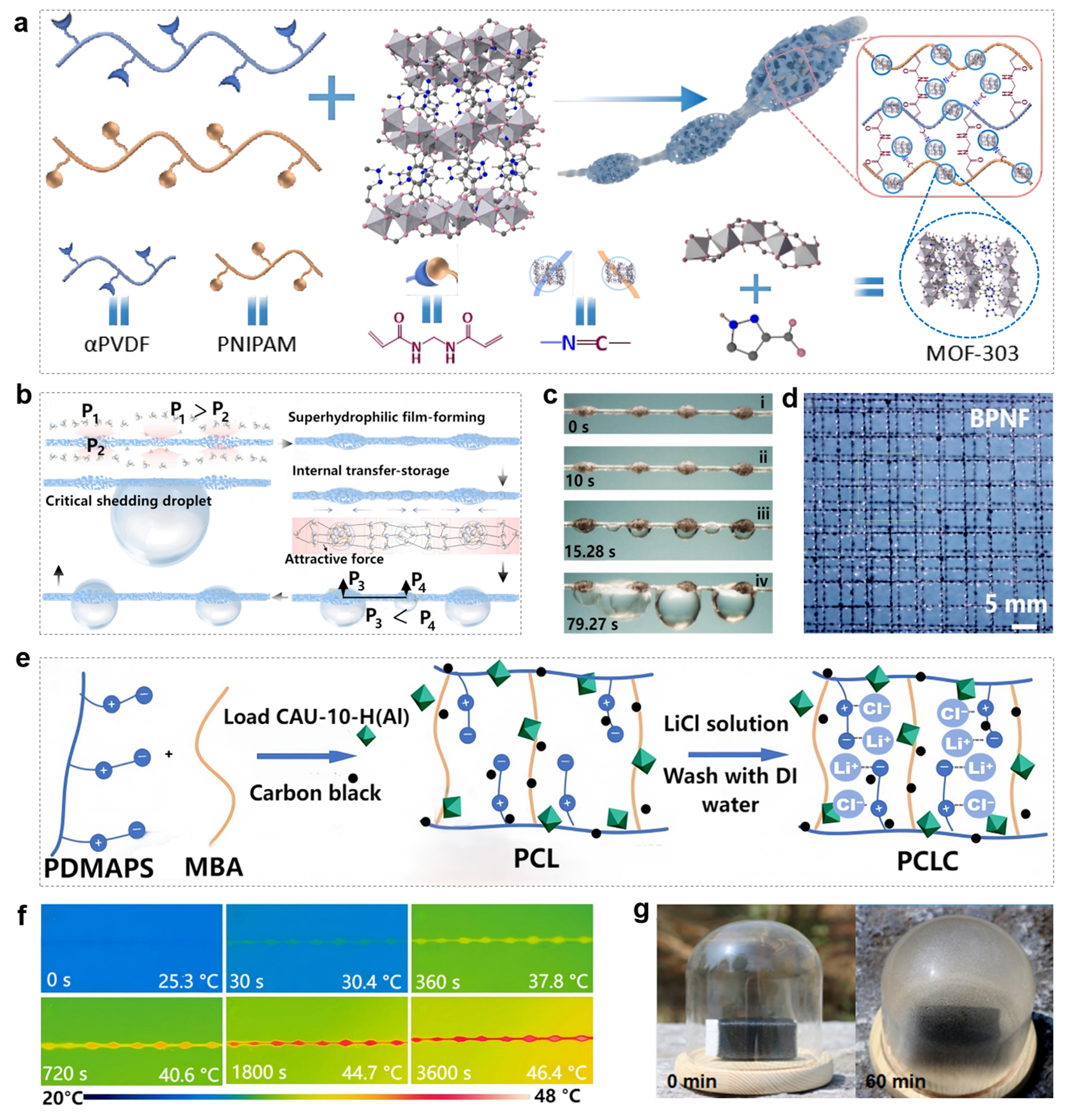 - Zhu, L.; Pan, H.; Wei, H.; Gao, C.; Zhang, T.; Zhou, M.; Luo, Q.; Tian, B.; Wang, J.; Hou, Y. Bioinspired network of MOF-nanofibril-humped fibers as high-efficiency water harvester. Sep. Purif. Technol. 2025, 379, 134800. [Google Scholar]