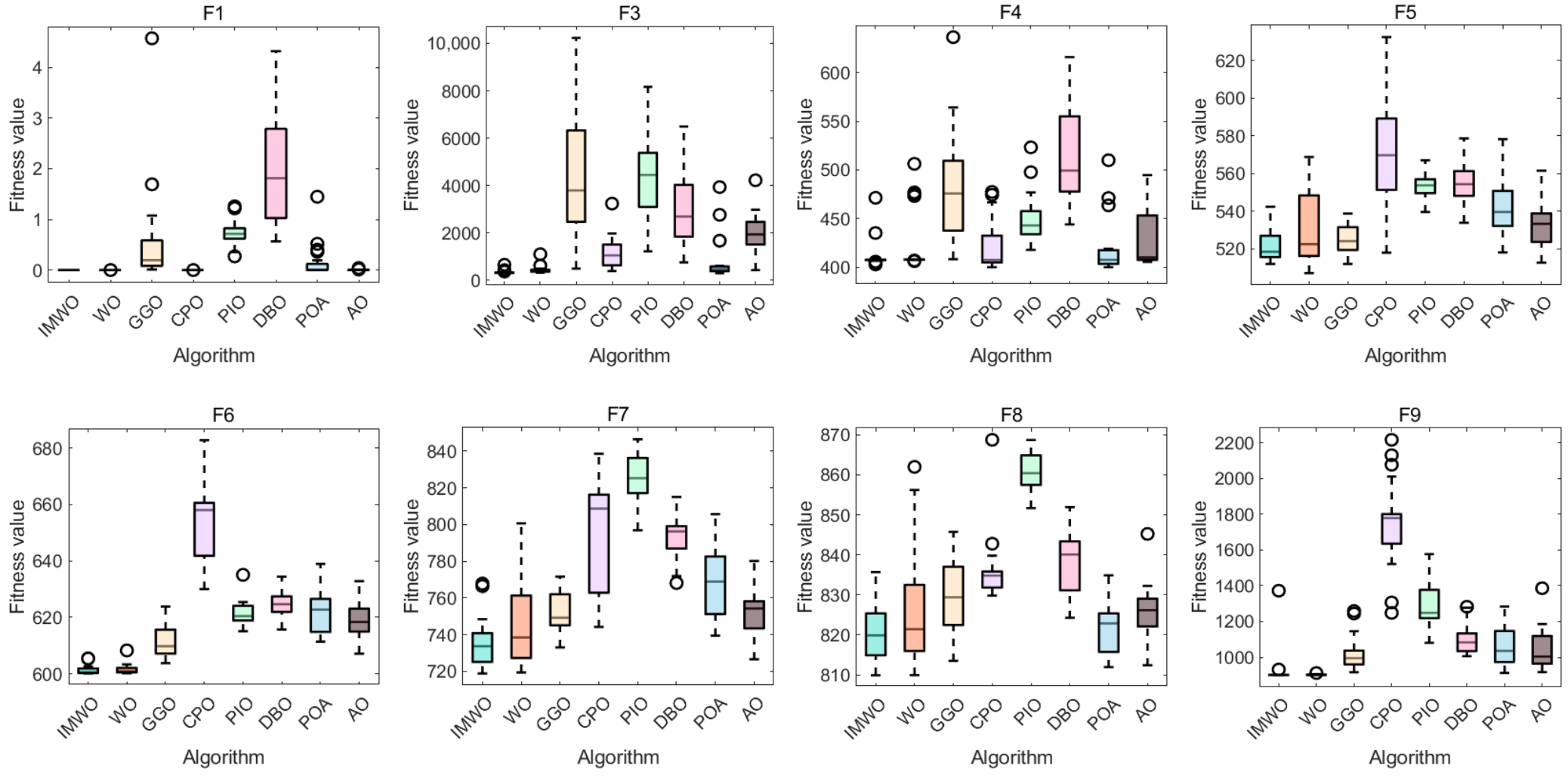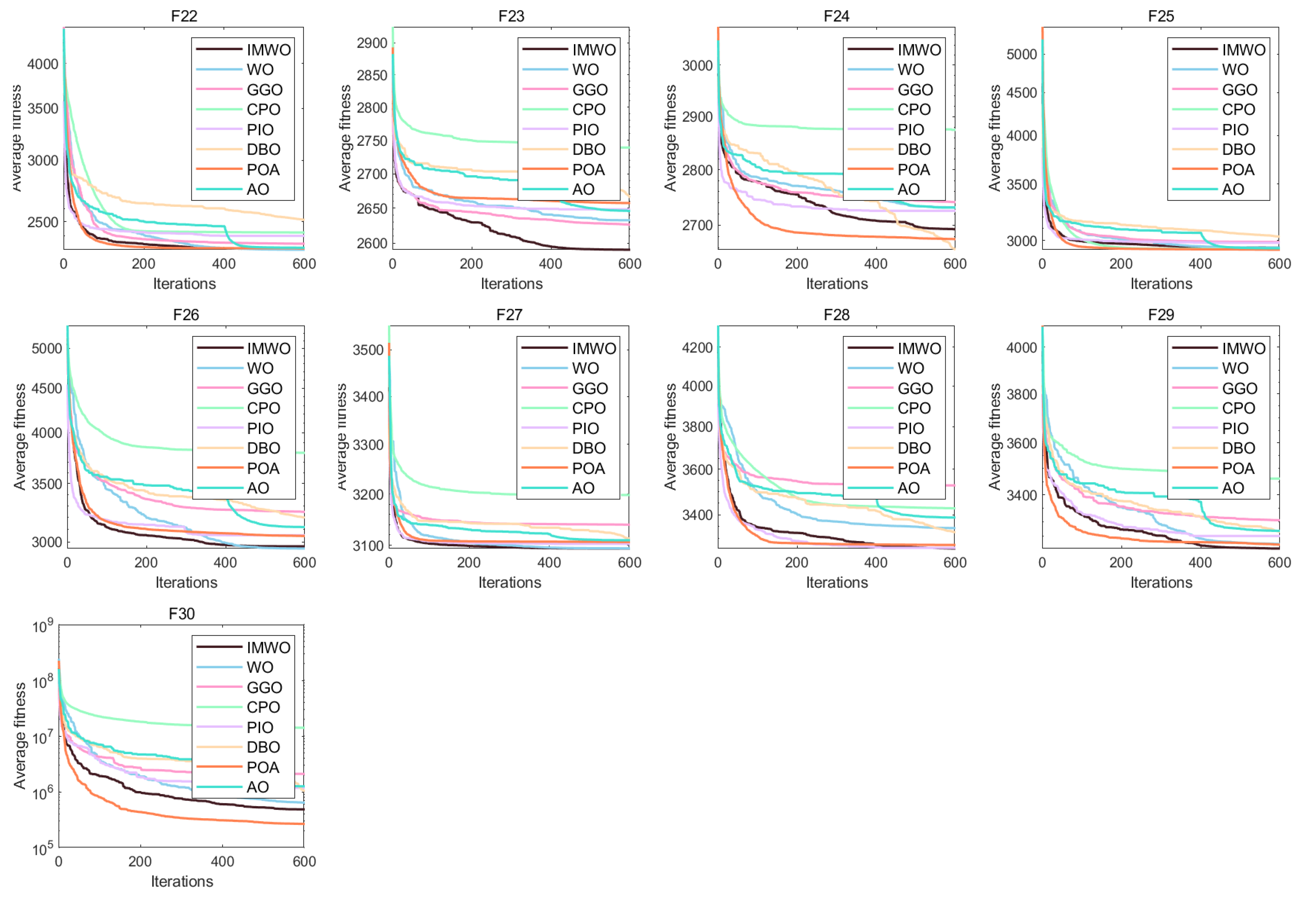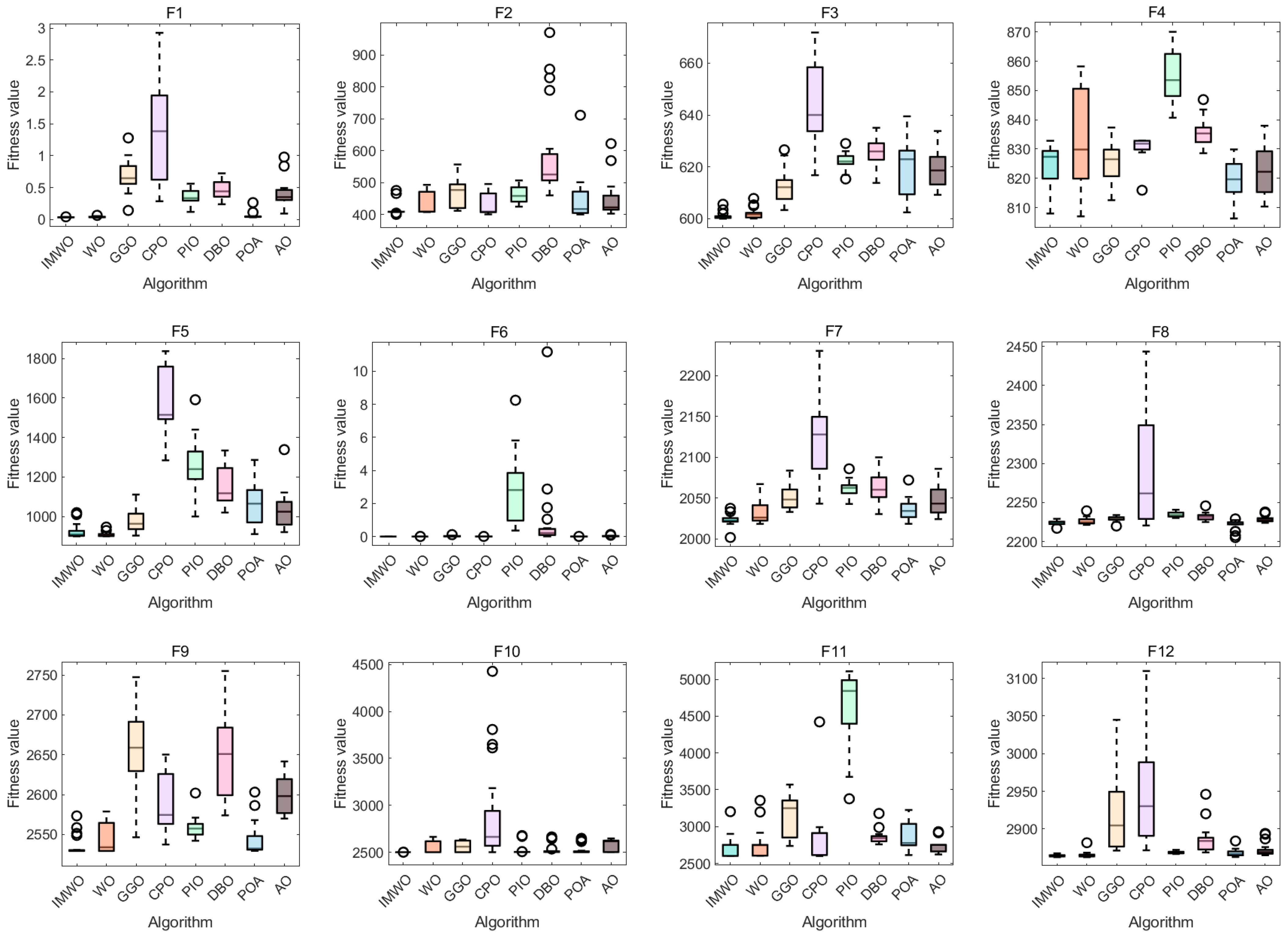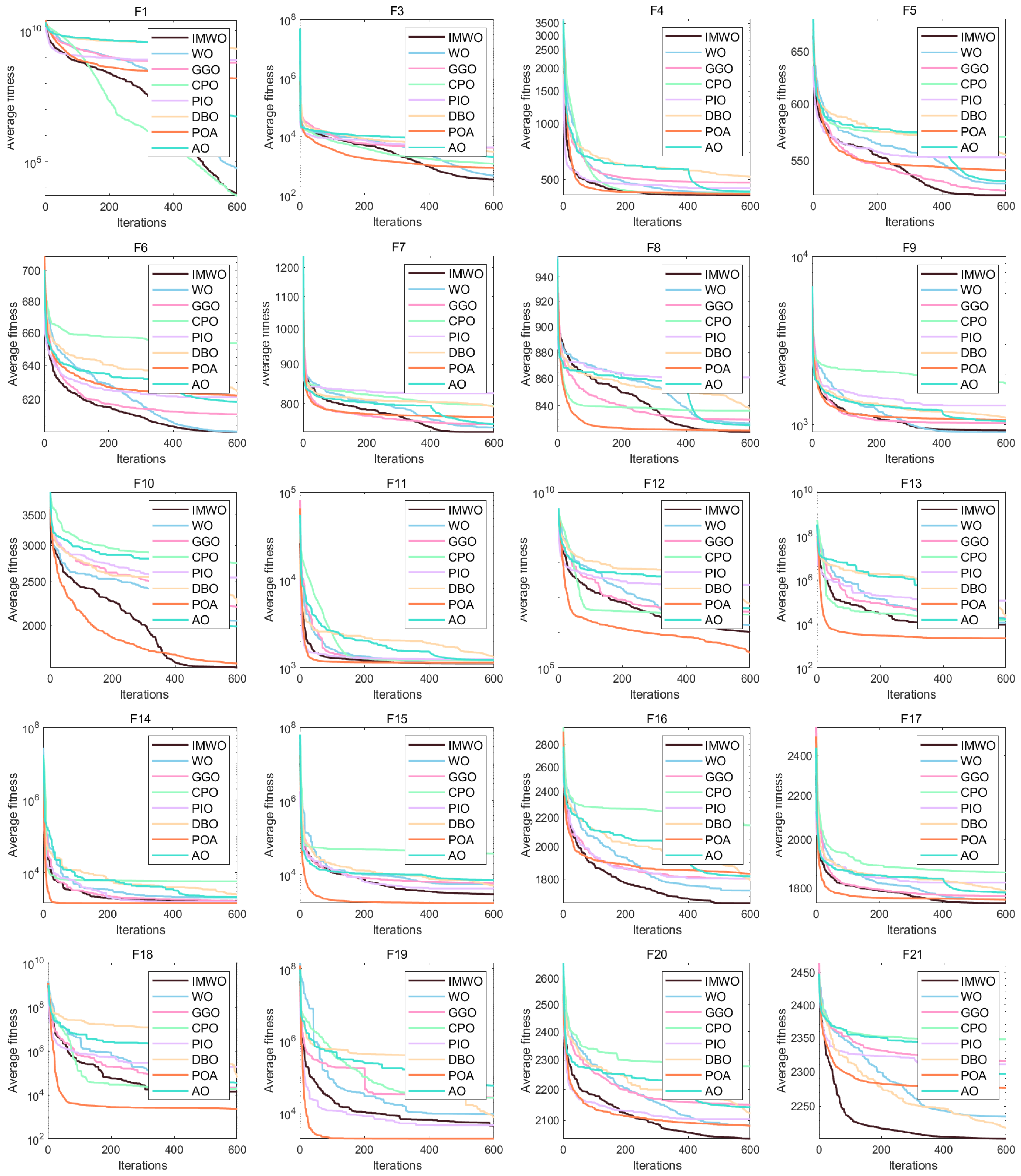 In summary, the IMWO algorithm improves optimization performance while maintaining the time complexity of the WO algorithm, ensuring that the algorithm has good operating efficiency and efficient optimization.
