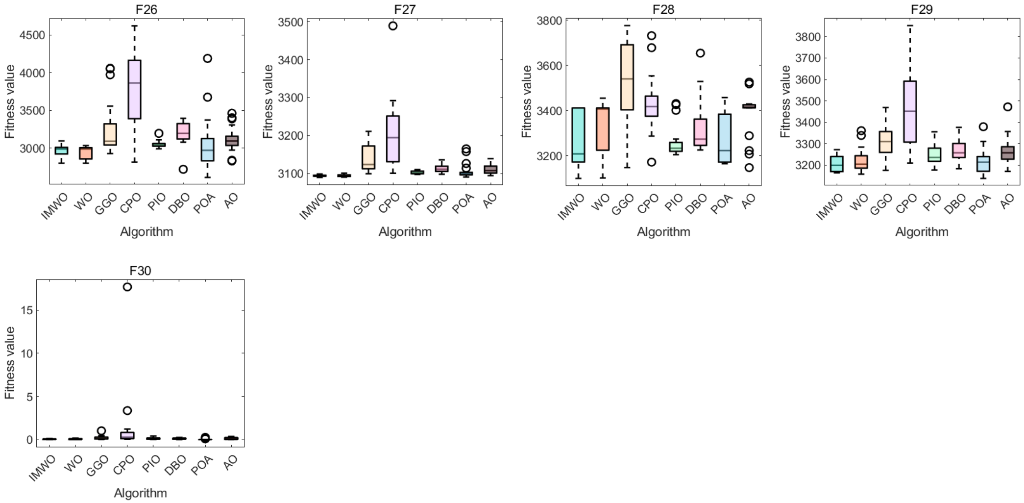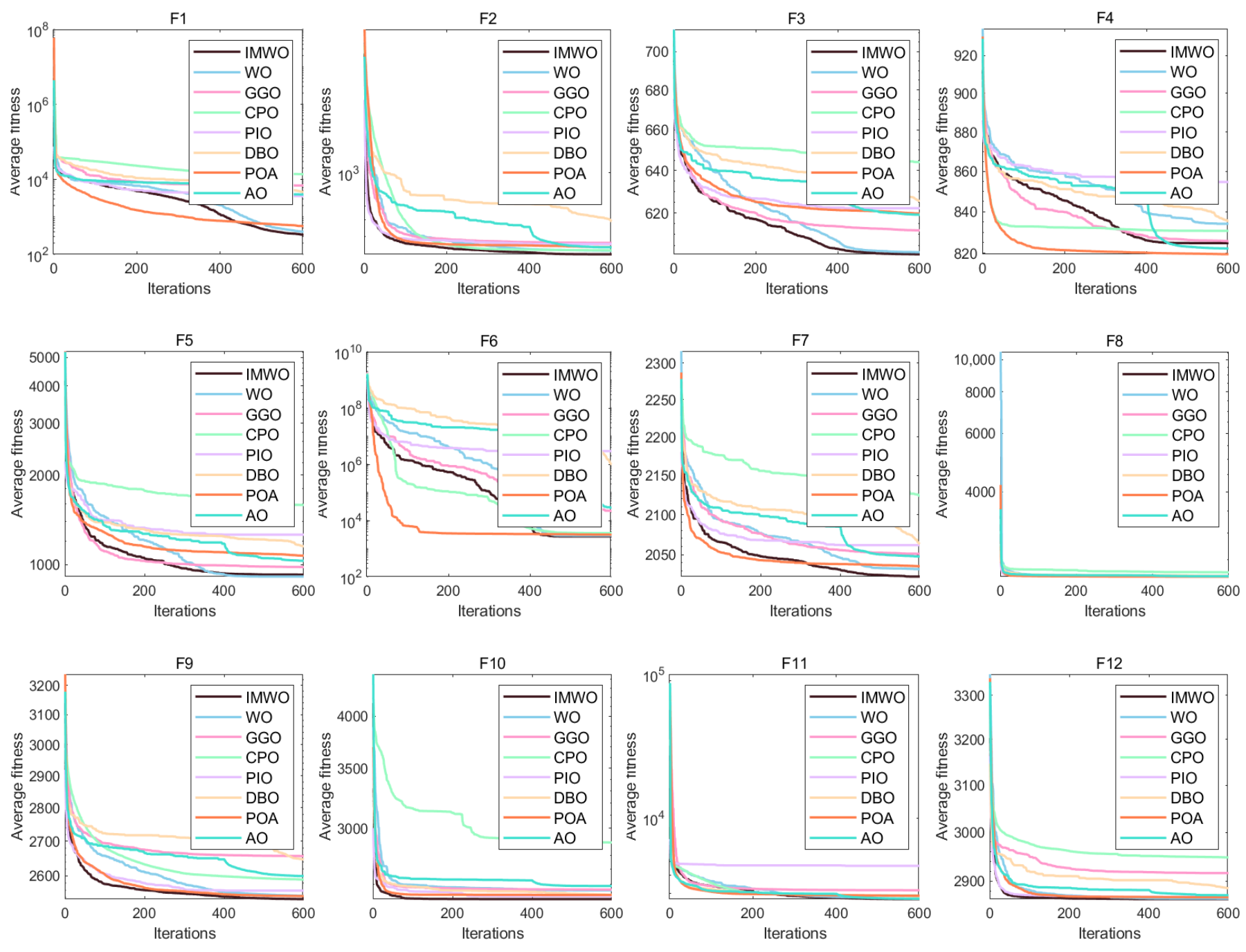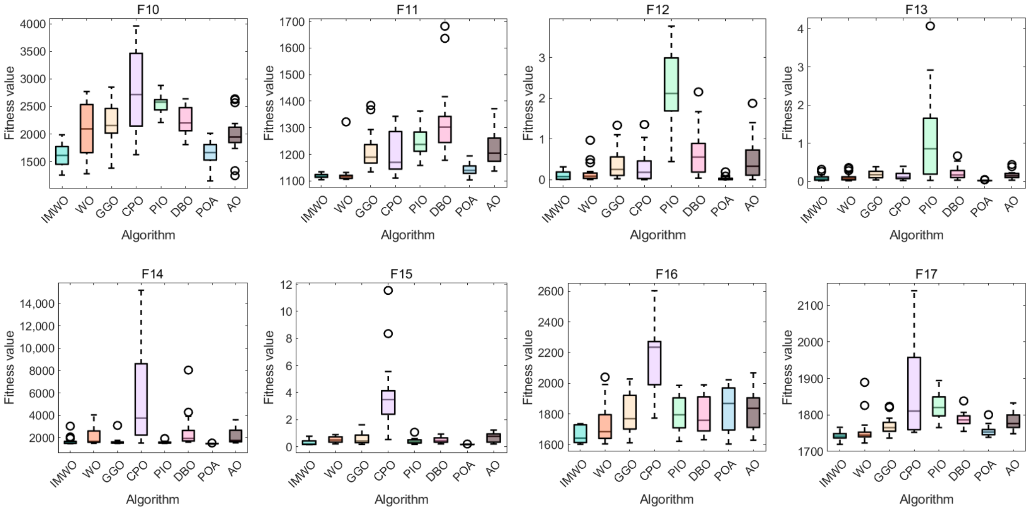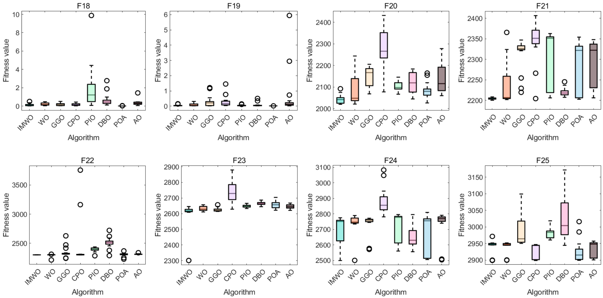 In summary, the IMWO algorithm improves optimization performance while maintaining the time complexity of the WO algorithm, ensuring that the algorithm has good operating efficiency and efficient optimization.