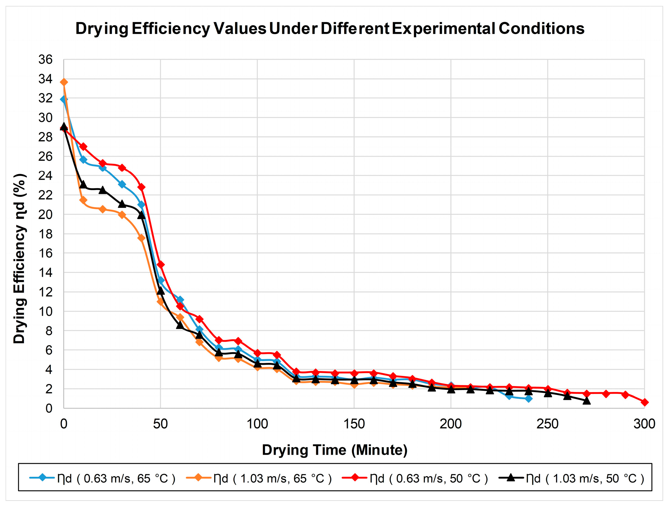 Total energy consumption (): Efficiency is a directly effective parameter, as it is the ratio between the energy supplied to the system and the moisture removed [