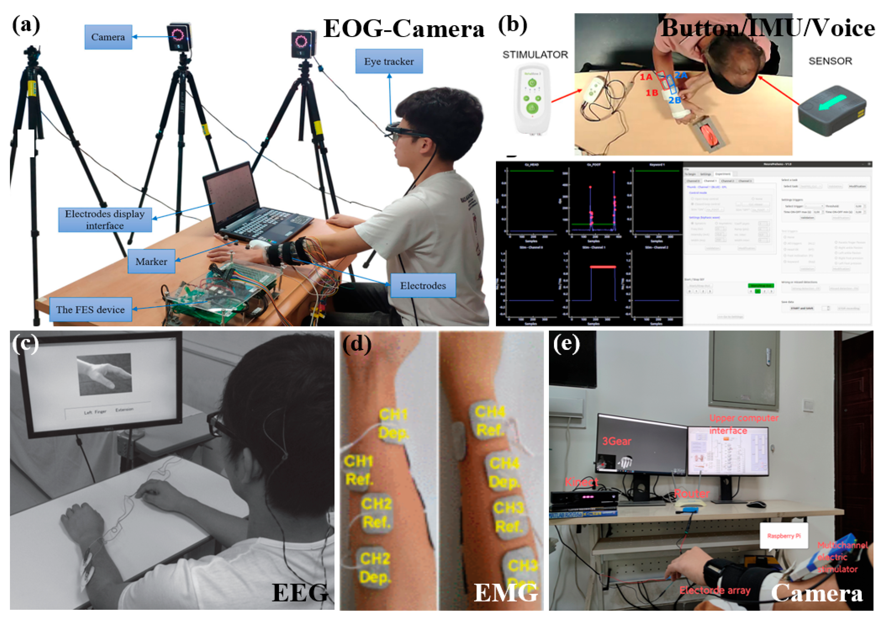 | RUPERT | Reha Stim2 | ILC | EMG | active reach-to-grasp trainings | - | active reach-to-grasp trainings | Large volume, high complexity, and high cost | - | [231] |