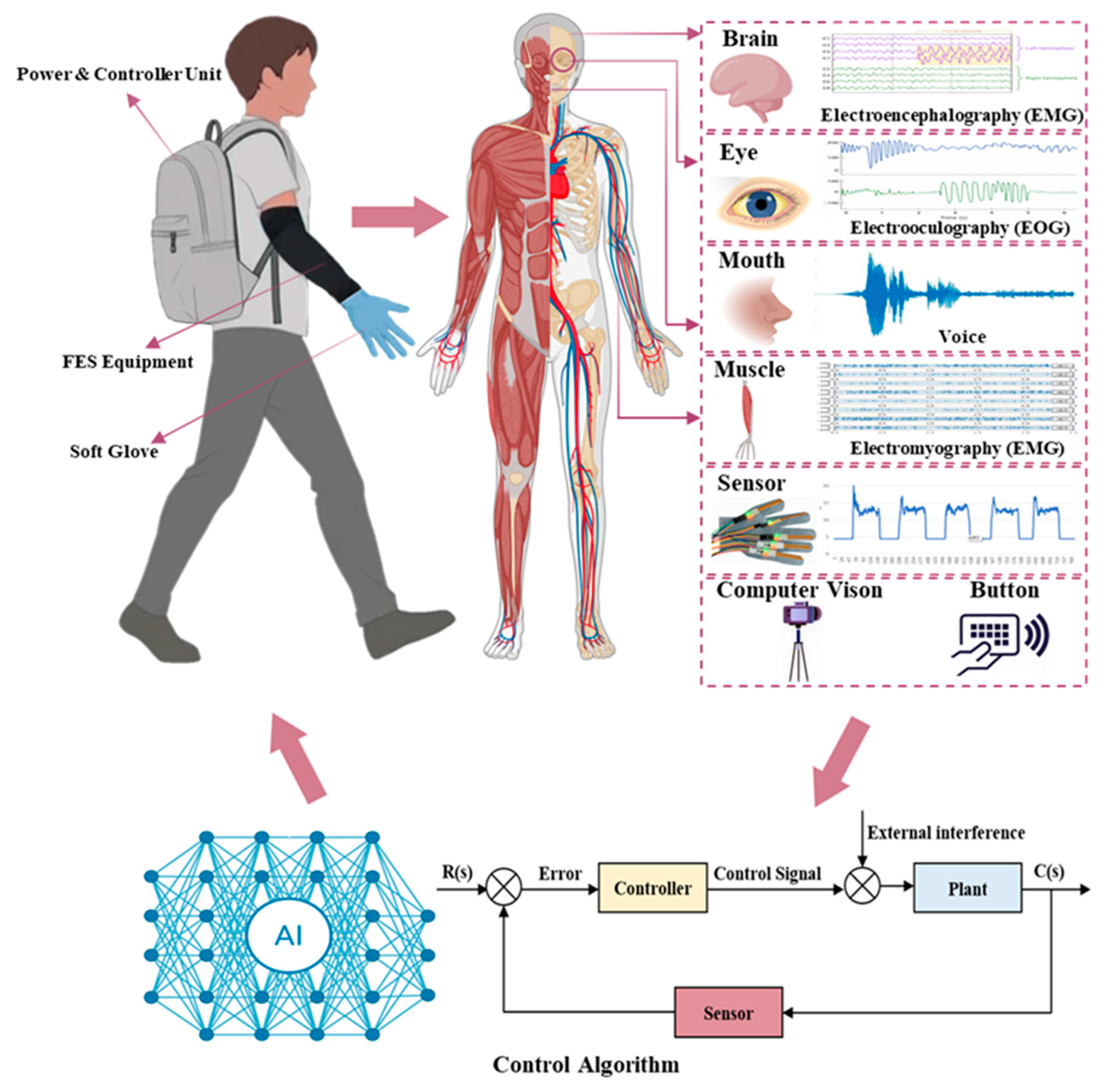 - Lin, C.; Cheng, K.H.; Pan, W.; Sun, J.; Gou, G.; Fu, J.; Leng, Y.; Fu, C. Adaptive Closed-Loop Functional Electrical Stimulation System With Visual Feedback for Enhanced Grasping in Neurological Impairments. IEEE Trans. Med. Robot. Bionics 2025, 7, 678–686. [Google Scholar] [CrossRef]