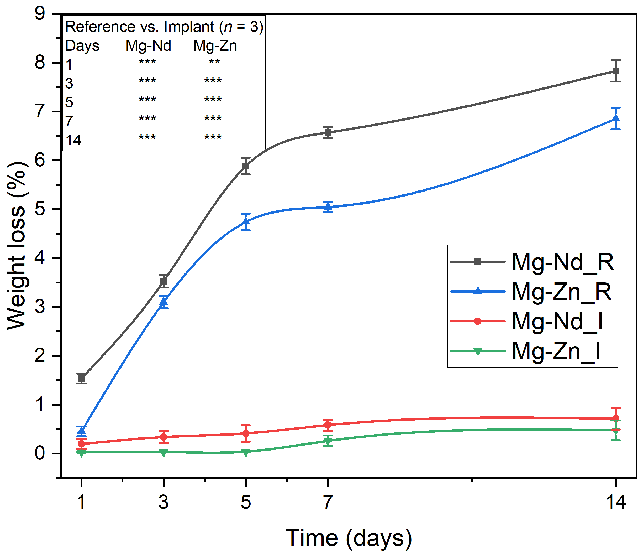 - Manescu (Paltanea), V.; Antoniac, A.; Moraru, M.C.; Antoniac, I.; Cotrut, C.M.; Gradinaru, S.; Dreanca, A.I.; Sevastre, B.; Pop, R.; Tabaran, F.A.; et al. Suitability of Mg-Nd and Mg-Zn Alloys to Obtain Biodegradable Structures for Bone Defects. JFB 2025, 16, 423. [Google Scholar] [CrossRef] [PubMed]