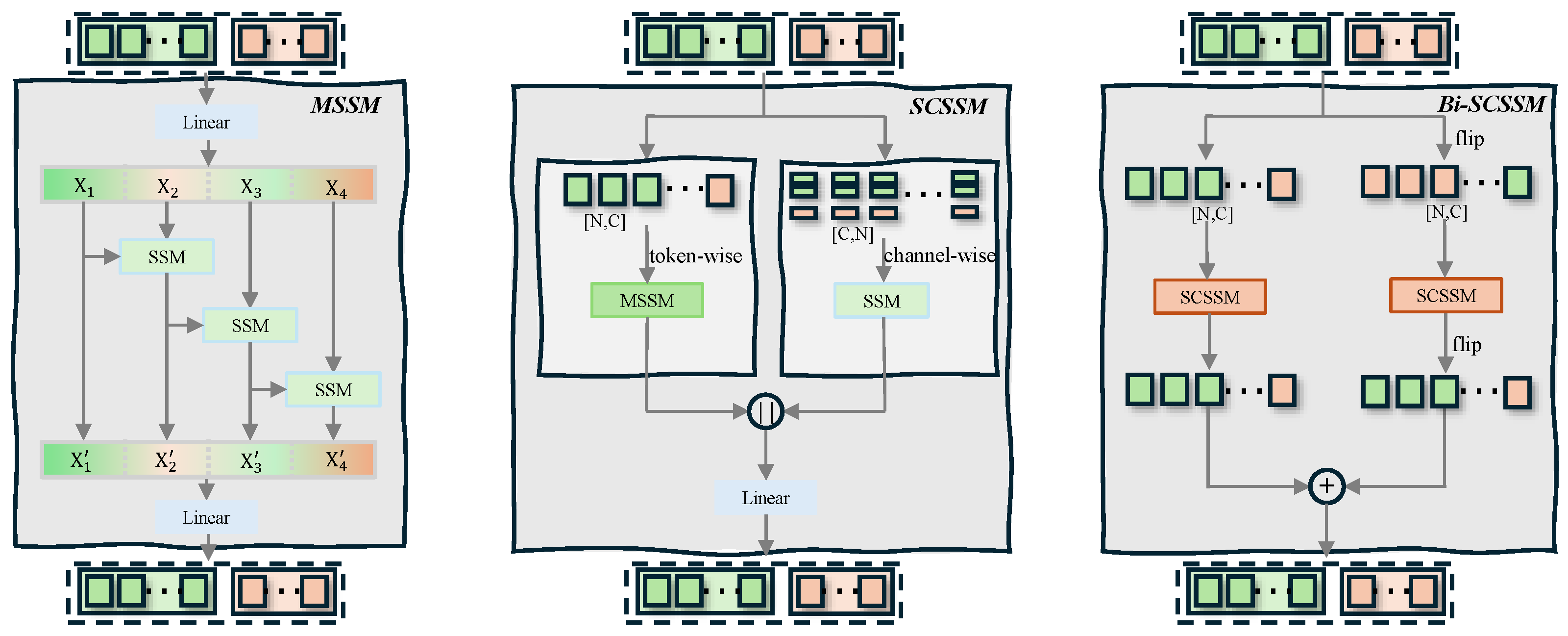 3.2.3. Spatial-Channel Grouped SSM (SCSSM) Block