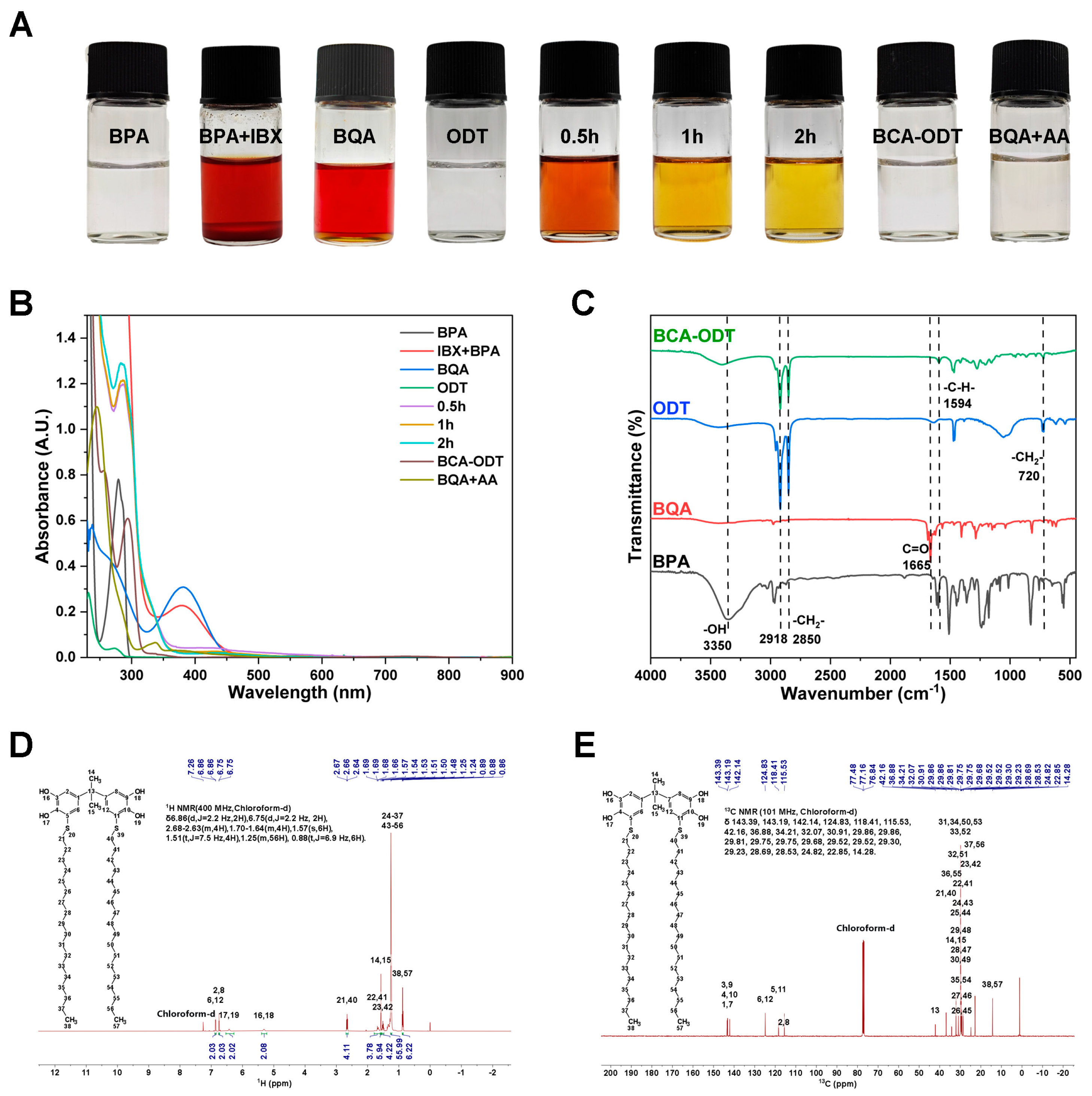 Figure 1A,B). These results illustrated that BQA actually reacted with ODT to synthesize BCA-ODT.
