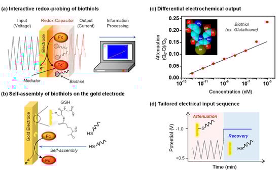 - Liu, Z.; Liu, Y.; Kim, E.; Bentley, W.E.; Payne, G.F. Electrochemical probing through a redox capacitor to acquire chemical information on biothiols. Anal. Chem. 2016, 88, 7213–7221. [Google Scholar] [CrossRef] [PubMed]