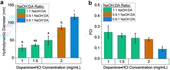 - Ju, K.-Y.; Lee, Y.; Lee, S.; Park, S.B.; Lee, J.-K. Bioinspired polymerization of dopamine to generate melanin-like nanoparticles having an excellent free-radical-scavenging property. Biomacromolecules 2011, 12, 625–632. [Google Scholar] [CrossRef] [PubMed]