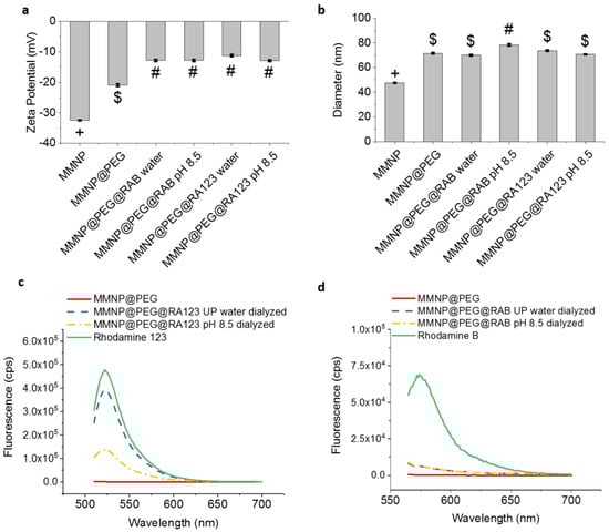 2.2.4. Post-Functionalization of MMNP@PEG with Rhodamine B or Rhodamine 123