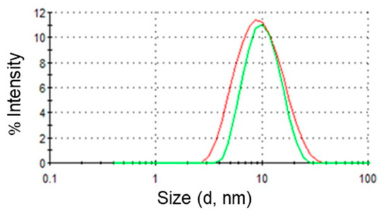 Finally, DLS was used to determine droplet sizes in empty and drug loaded microemulsions. This technique measures the diffusion of particles moving under Brownian motion, and converts this to size and a size distribution using the Stokes–Einstein relationship. The existence of one population of oil droplets of about 10 nm in diameter was evidenced. Upon addition of DPS-2 in the oil phase the same monomodal particle size distribution was observed verifying the drug’s location in the oil droplets of the O/W microemulsions.