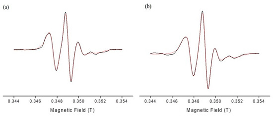 Data collection and analysis were performed using the Bruker WinEPR acquisition and processing program (Manufacturer, City, State, Country). All spectral simulations were performed with home-written programs in MATLAB (The MathWorks, Natick, MA, USA) employing the Easy Spin toolbox for EPR spectroscopy [