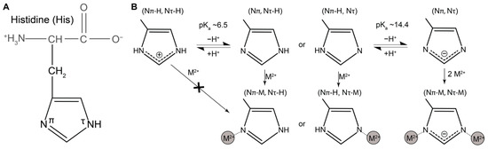 - Sundberg, R.J.; Martin, R.B. Interactions of histidine and other imidazole derivatives with transition metal ions in chemical and biological systems. Chem. Rev. 1974, 74, 471–517. [Google Scholar] [CrossRef]