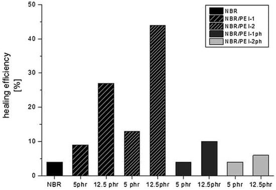 - Schüssele, A.C.; Nübling, F.; Thomann, Y.; Carstensen, O.; Bauer, G.; Speck, T.; Mülhaupt, R. Self-healing rubbers based on NBR blends with hyperbranched polyethylenimines. Macromol. Mater. Eng. 2012, 297, 411–419. [Google Scholar] [CrossRef]
