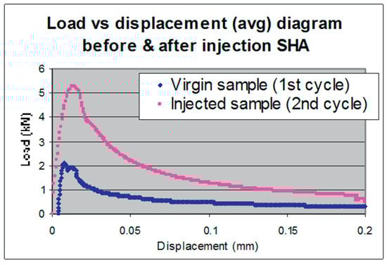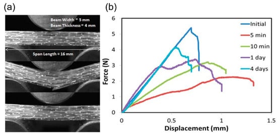 Currently, the literature contains various measurement methods and equations for evaluating the quality of self-repair. However, a comparison can only be made if exactly the same test protocol has been used both within material classes and between different material classes such as ceramics, concretes, brittle and elastic polymers, fiber-reinforced composites and biological materials. This is widely used to determine the percentage recovery of a selected mechanical property as a measure of the quality of the repair function. Mechanical tests (e.g., bending, tension, compression, torsion, cycling) determine the material properties of test specimens (e.g., stiffness, strength) before and after self-repair and are then used to calculate a dimensionless value expressing the percentage recovery of the respective mechanical property [,,]. In most cases, the healing efficiency () of the mechanical properties is calculated as percentage of the property of the pristine material by using either Equations (1) or (2) [,,]: