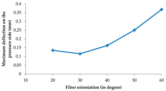 Effect of different fiber orientation on maximum deflection of the pressure side blade.