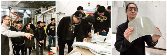 Offered at University of California (UC) Berkeley’s Department of Architecture in the College of Environmental Design, Studio One is a one-year post-professional Master’s program for students who already have an accredited Bachelor in Architecture degree and who seek a special, application-oriented, and multidisciplinary learning experience. A two-semester studio class taught by Professor Simon Schleicher makes up the core of the program. It is supplemented by tailored seminars by the Professors Richard Hindle and Marco Cenzatti that support the broader agenda of the program. The typical class size is 10–15 students, for which the university receives applications from around the world. Each year, Studio One seeks to forge new interdisciplinary alliances and long-term industry partnerships. The curriculum itself is designed to mediate between education and research. Aside from gaining basic knowledge within their own fields, the students also gain experience outside of their comfort zones by learning from other disciplines. During the class, a special focus is placed on providing students with the following “21st century skills” as described by the Institute of Museums and Library services: critical thinking and problem solving, creativity and innovation, communication and collaboration, visual and scientific literacy, and cross-disciplinary thinking [2]. To meet these objectives, students are exposed to an inquiry-oriented, experiment-based, and project-driven research agenda. The class is naturally divided into two semesters. In the first semester, students work individually or in small groups. In the second semester, the students join forces and build one project together as a team. Due to the nature of this pedagogical structure, it is possible to push an initial idea beyond the usual scale of small models into larger-scale prototypes and pavilions. To achieve this goal, the class is also supported by a wide network of academic research institutions as well as professionals inside and outside the building industry. Partners at UC Berkeley are, for example, Professor Robert Full and his poly-PEDAL Lab at the Department of Integrative Biology as well as Professor Ronald Fearing and his Biomimetic Millisystems Lab at the Department of Electrical Engineering and Computer Sciences. With its partners, Studio One is contributing to a newly-formed, campus-wide teaching and research initiative called Design Innovation from Nature. As part of this initiative, our students collaborated with various museums including the Essig Museum of Entomology, the University and Jepson Herbaria, and the Botanical Garden at UC Berkeley, as shown in Figure 1, Figure 2 and Figure 3. On various field trips, students visited local industry partners such as Autodesk Pier 9, the Otherlab, and Kreysler & Associates, as shown in Figure 4. Over the past two years, Studio One has also found strong support from leading experts and professionals in the field and hosted over 30 guest lectures.
