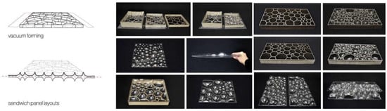 Ten sandwich panels were (a) produced by using a sequential vacuum forming process and (b) assembled together to form an insect-inspired facade prototype.