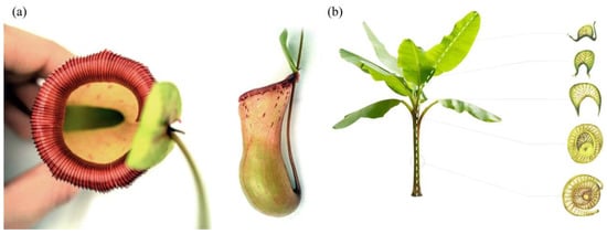 Morphological study of the Pitcher Plant (a) and bananas leaf stalks (b).