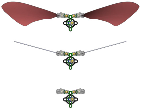 - Lau, G.K.; Chin, Y.W.; Goh JT, W.; Wood, R.J. Dipteran-insect-inspired thoracic mechanism with nonlinear stiffness to save inertial power of flapping-wing flight. IEEE Trans. Robot. 2014, 30, 1187–1197. [Google Scholar] [CrossRef]