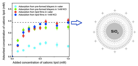 - Rapuano, R.; Carmona-Ribeiro, A.M. Physical adsorption of bilayer membranes on Silica. J. Colloid Interface Sci. 1997, 193, 104–111. [Google Scholar] [CrossRef]