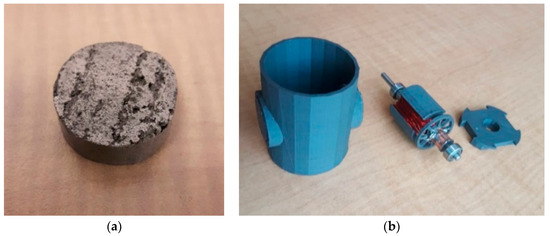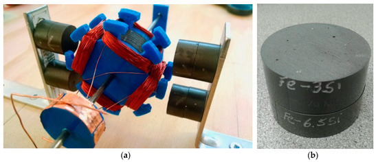 (a) FDM-printed rotor of Fe particles embedded in a PLA matrix with 50:50 by weight; (b) cold-spray additively manufactured Fe–3%Si particles embedded in PLA matrix with 50:50 by volume.