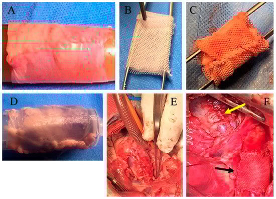 - Nappi, F.; Spadaccio, C.; Castaldo, C.; Di Meglio, F.; Nurzynska, D.; Montagnani, S.; Chello, M.; Acar, C. Reinforcement of the pulmonary artery autograft with a polyglactin and polydioxanone mesh in the Ross operation: Experimental study in growing lamb. J. Heart Valve Dis. 2014, 23, 145–148. [Google Scholar]