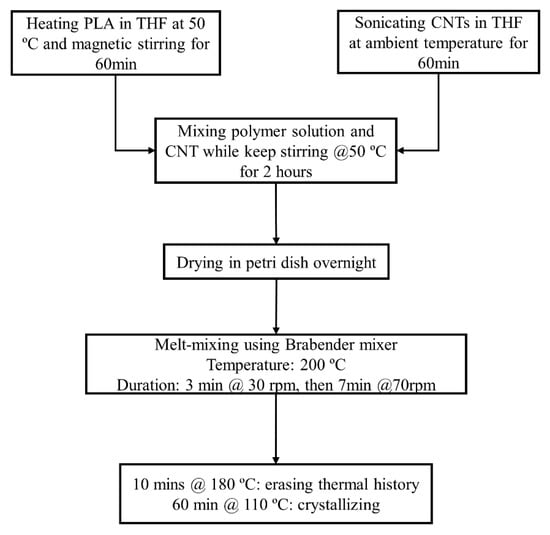 - Vu, T.; Nikaeen, P.; Akobi, M.; Depan, D.; Chirdon, W. Enhanced Nucleation and Crystallization in PLA/CNT Composites via Disperse Orange 3 with Corresponding Improvement in Nanomechanical Properties. Polym. Adv. Technol. 2020, 31, 415–424. [Google Scholar] [CrossRef]