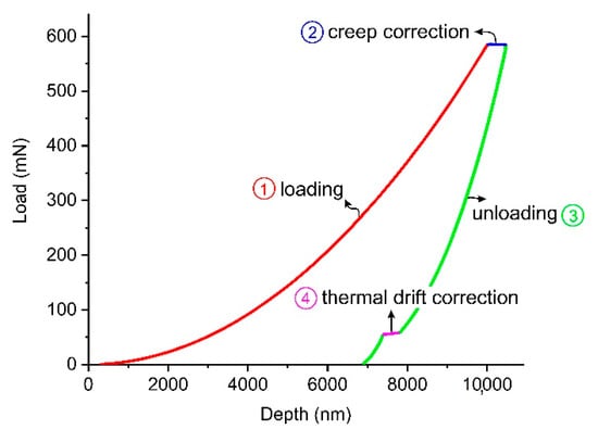 - Li, X.; Bhushan, B. A review of nanoindentation continuous stiffness measurement technique and its applications. Mater. Charact. 2002, 48, 11–36. [Google Scholar] [CrossRef]