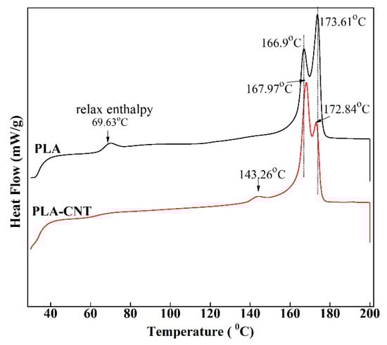 | PLA-CNT | 0 | 61.8 ± 1.1 | 160.7 ± 0.1 | 168.0 ± 0.2 | 172.8 ± 0.1 | 41.4 ± 0.1 |