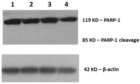 The biochemical analysis of cell death markers was performed by Western blotting as previously described [18]. The specific cleavage of poly(adenosine diphosphate-ribose) polymerase 1 (PARP-1), a nuclear protein implicated in DNA repair, to a 89 kDa fragment as a result of the caspase protease activity associated with the activation of apoptosis is considered as a sensitive apoptotic marker [44]. As shown in Figure 4, PARP-1 cleavage was not detected in SK-MEL 28 cells treated with DPS-2.