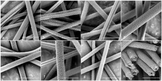 - Natarajan, L.; New, J.; Dasari, A.; Yu, S.; Manan, M.A. Surface morphology of electrospun PLA fibers: Mechanisms of pore formation. RSC Adv. 2014, 4, 44082–44088. [Google Scholar] [CrossRef]