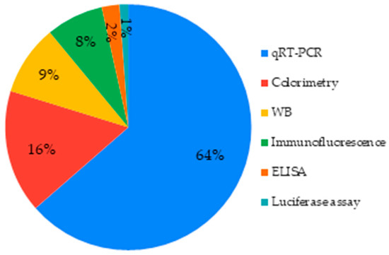About 94% of articles investigated the cell viability and/or cell proliferation. A large panel of techniques were found for evaluating these parameters (Figure 9).