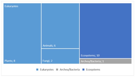 Ecosystems are the most recurrent models, cited in 10 projects, followed by Eukaryotes models as plants and animals. Fungi and Archaea/Bacteria models are the less explored models in our sample (Figure 11).