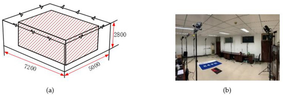 The Nokov optical three-dimensional motion capture system is actually based on computer graphics principles, using several cameras in space to record marked points and then processing them with a computer to obtain data such as the coordinates, velocity, and acceleration of moving objects in space. This system also can provide real-time feedback. According to the recommended layout and the actual situation, we have arranged a layout of @10Cameras as shown in Figure 2, and the reliable positioning coverage can reach more than 90%.