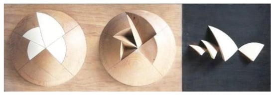 Utzon therefore designed the curved surfaces that would form the roofs of the different parts of his building, imagining that they would be made of concrete, using shell structures a few centimeters thick, as eggshells. This is reflected in the competition drawings (Figure 5). However, as opposed to the aforementioned examples of Torroja, Candela, Nervi, etc., Utzon did not take geometry as the starting point for his creative process, but rather drew a series of organic forms, inspired by nature, that did not obey any geometrically known or mathematically defined figure. He himself referred to this fact in his competition report, stating that he had refused to use orthogonal forms in order to create what he called sculptures, large sculptures. These first natural references seem to be applied as formal analogies from a purely artistic point of view, without any great technical rigor to support them.